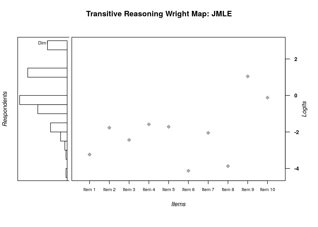 xlab = "Item Difficulty Estimates in Logits")