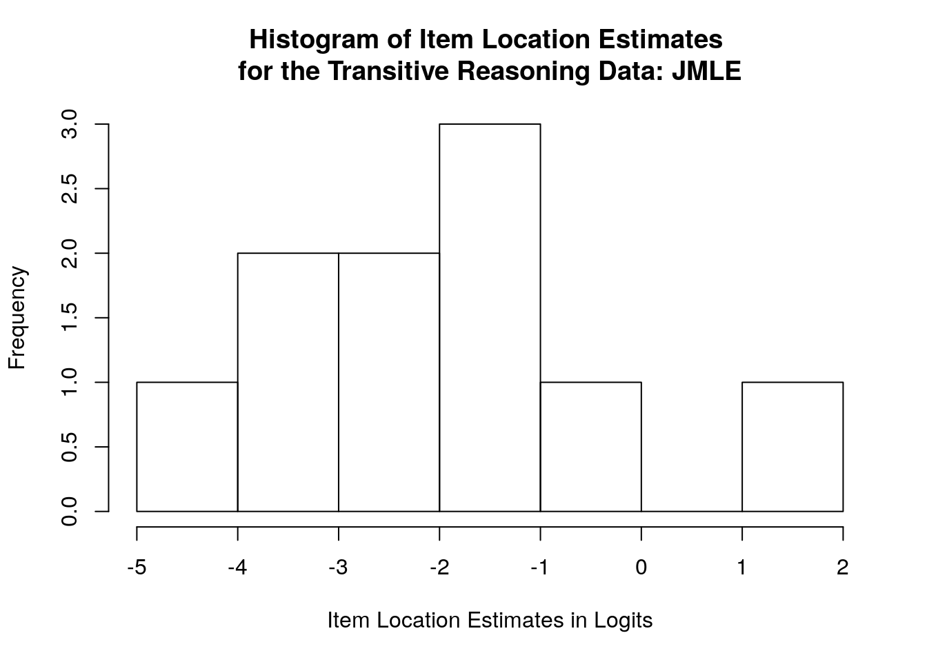 names(jmle.Table2) <- c("Task ID", "Proportion Correct", "Item Location","Item SE","Outfit MSE","Std. Outfit", "Infit MSE","Std. Infit")