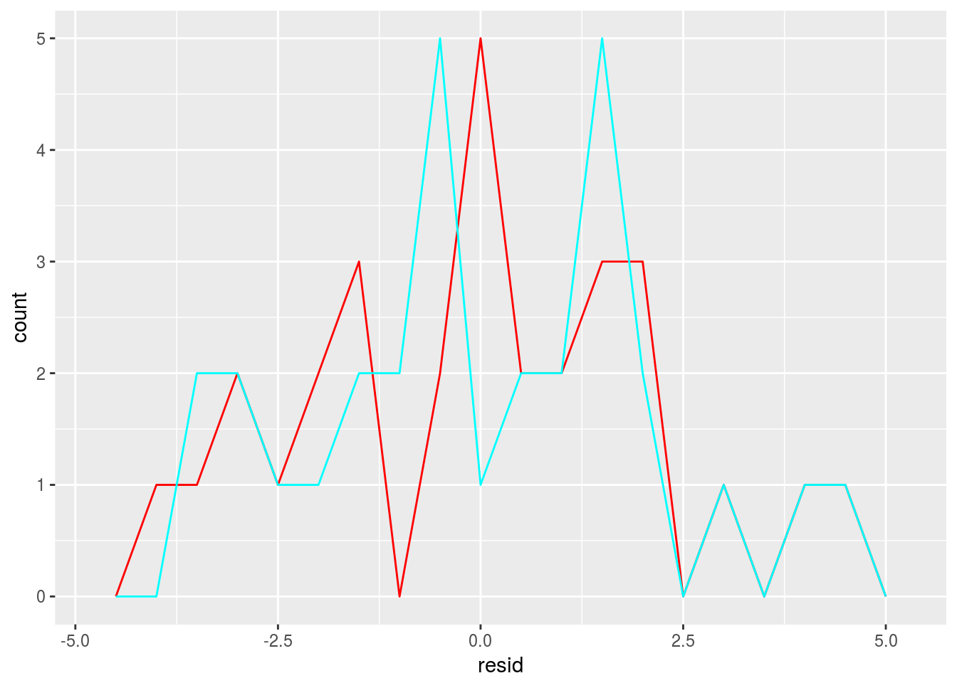 geom_freqpoly(data = sim1_2, aes(resid),binwidth = 0.5, color = 'cyan')
