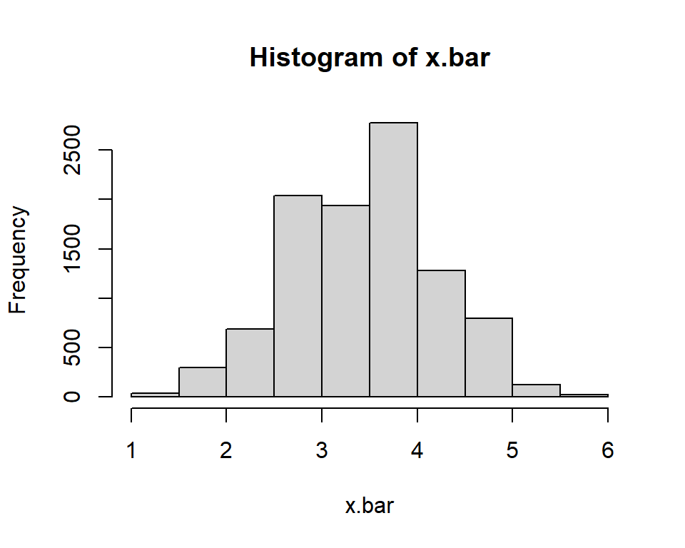 - Suppose I roll five 6-sided dice and take the average (i.e. \(\bar{x}\)) of the dice rolls. For instance, if I got (3,2,6,2,4), then \(\bar{x}=\frac{17}{5}\). We could repeat rolling and averaging 5 dice thousands of times and graph the results.