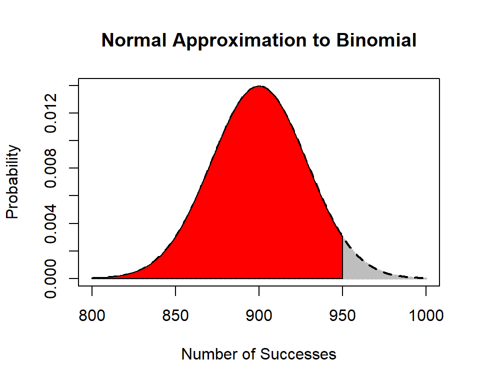 I want to find \(P(X \leq 950)\) with the normal approximation.