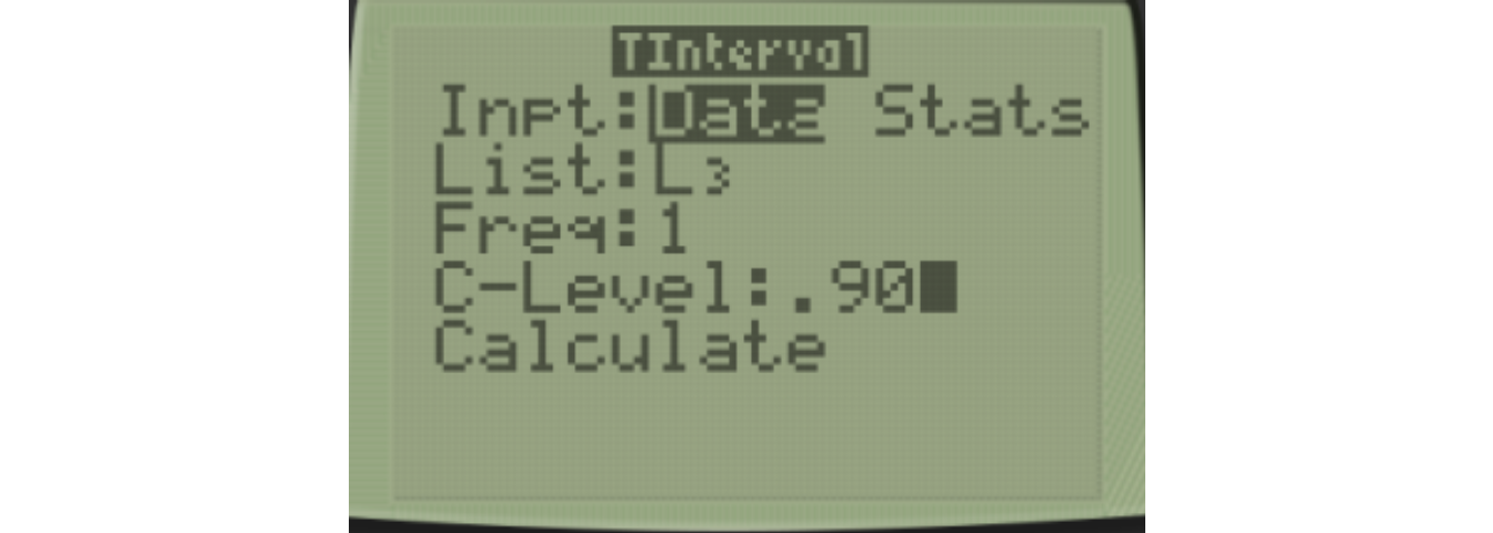 Finally, you can use 8:TInterval to get a confidence interval of the differences. I’ll do a 90% confidence interval as before, changing C-Level=.90.