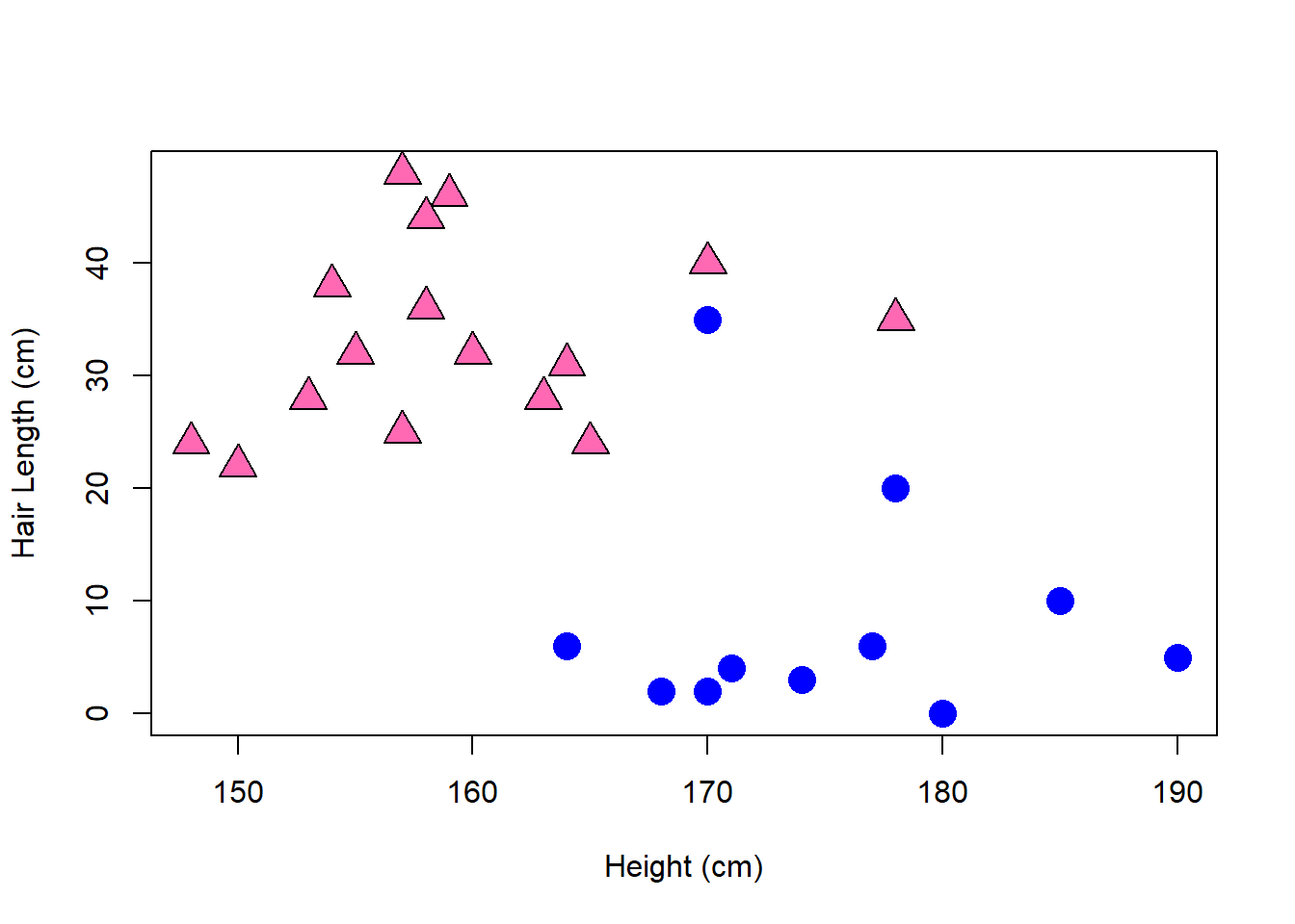\[\hat{Hair Length} = 14.736 + 0.117 Height - 27.039 Sex\]