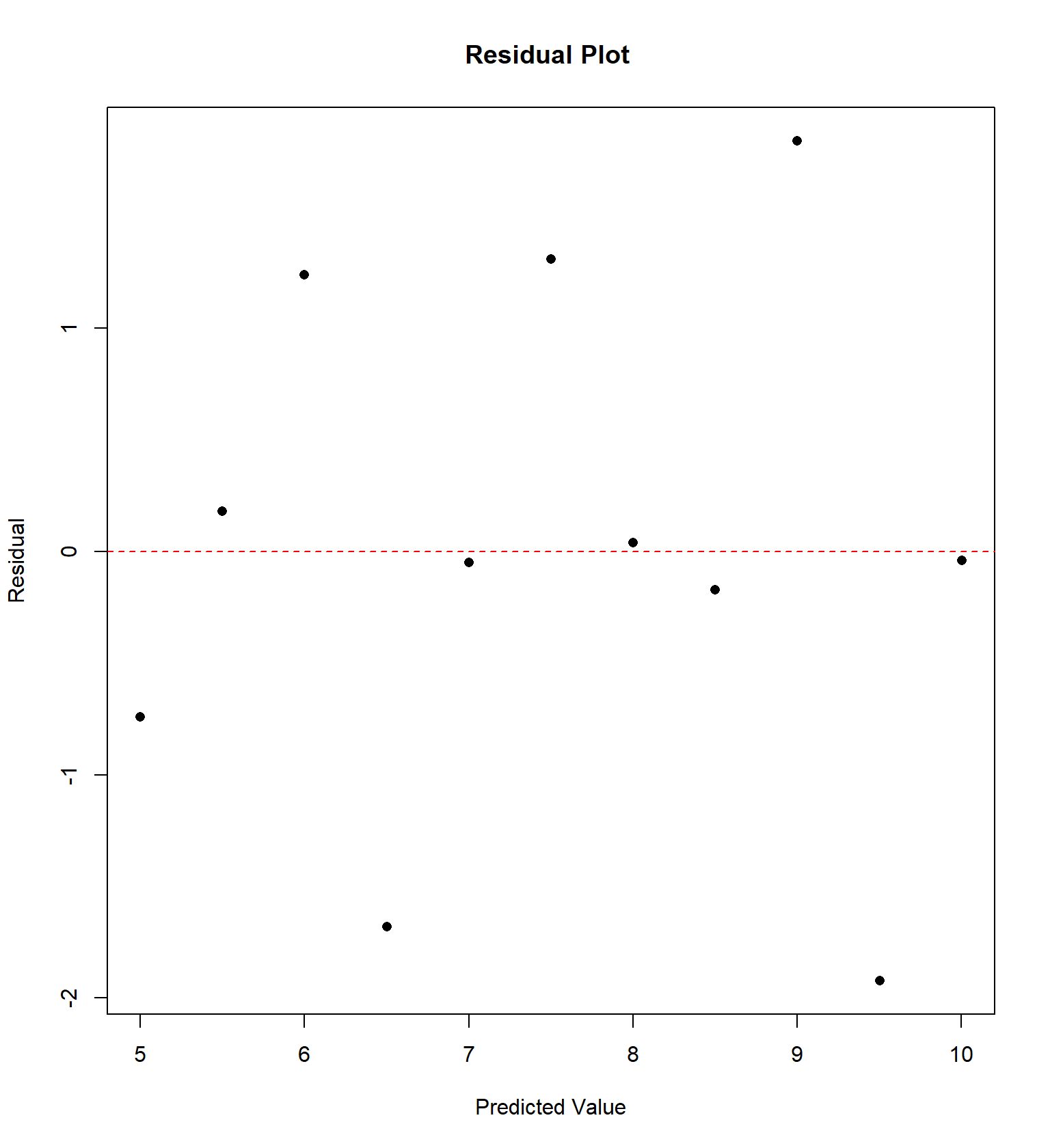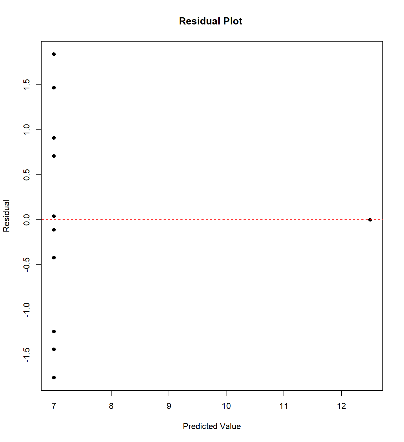 I did this with my software as well. Then construct a scatterplot with the predicted values on the \(x\)-axis and the residuals on the \(y\)-axis.
