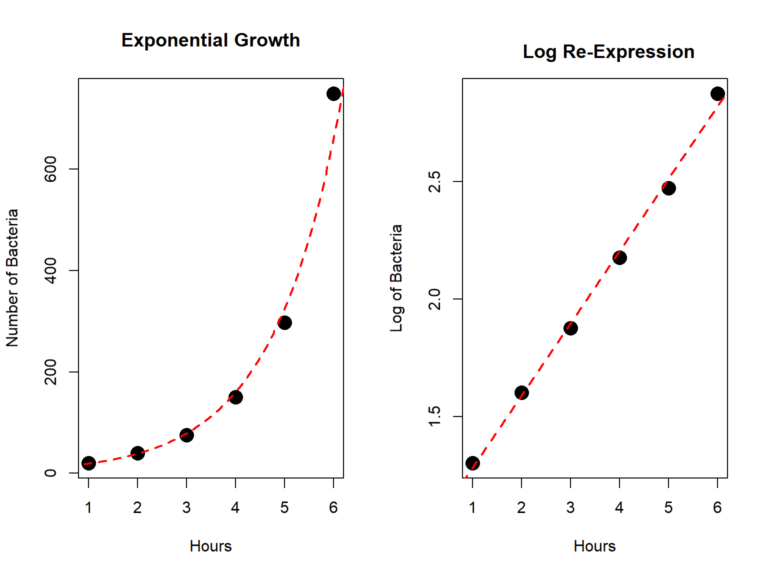 Here’s a simplified example, with \(X\)=hours and \(Y\)=number of bacteria in an experiment.