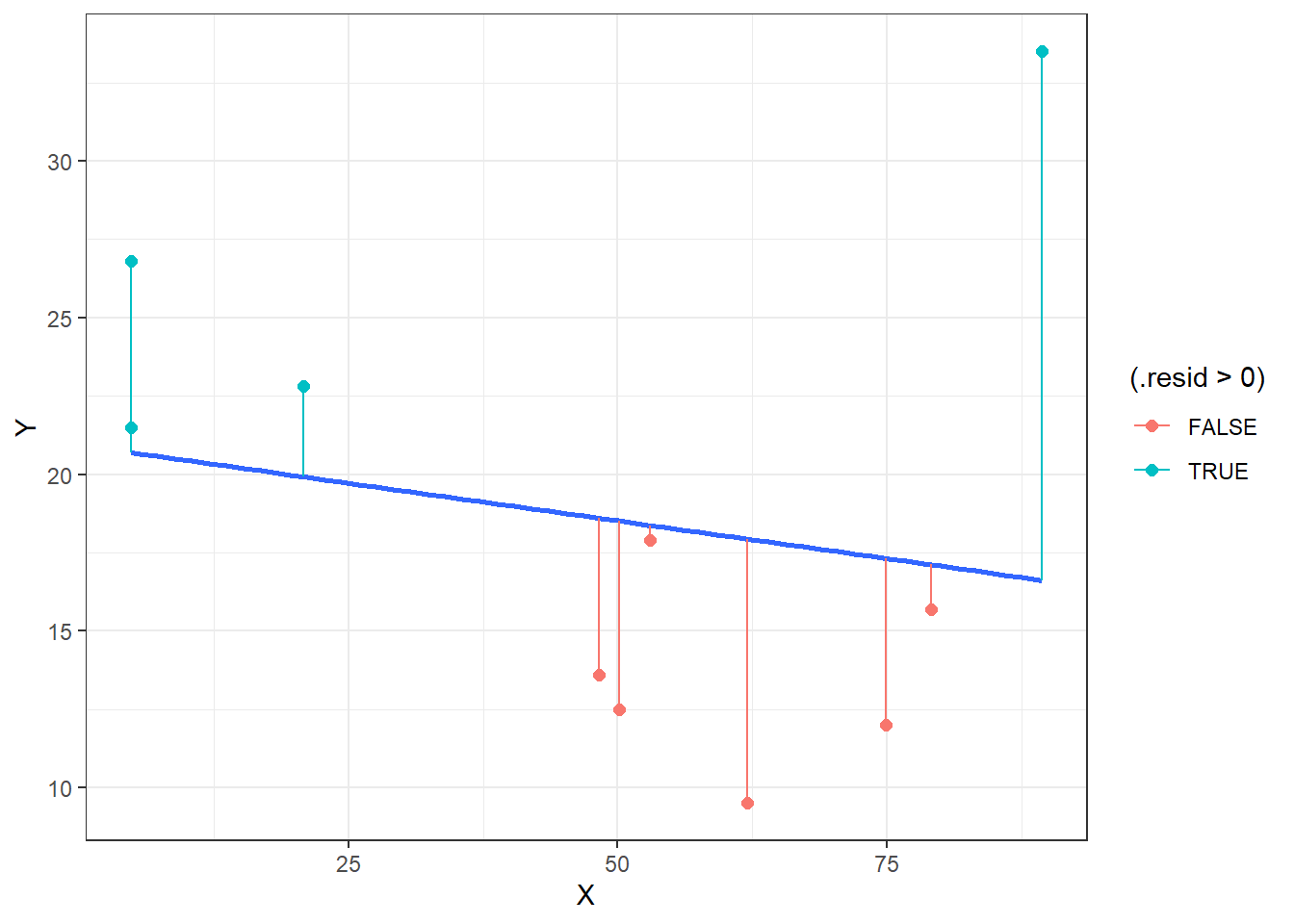 \[e = Y - \hat{Y} = 33.5 - 16.3 = 17.2\]