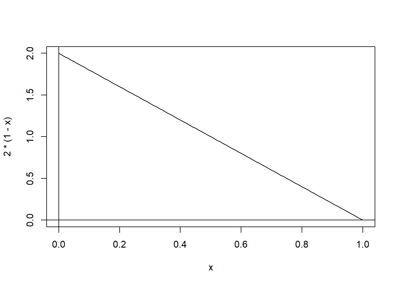 fun<-function(x) {2*(1-x) * (0 <= x & x <=1)}