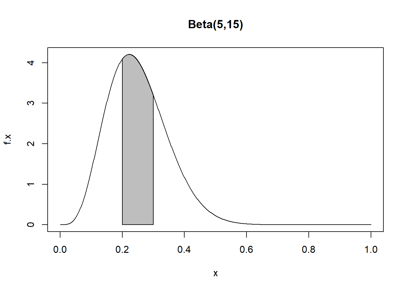 Suppose I want to know \(P(0.2 < X < 0.3)=F(0.3)-F(0.2)\).