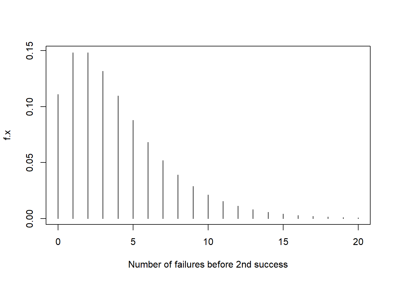 plot(f.x~x,type="h",xlab="Number of failures before 2nd success")