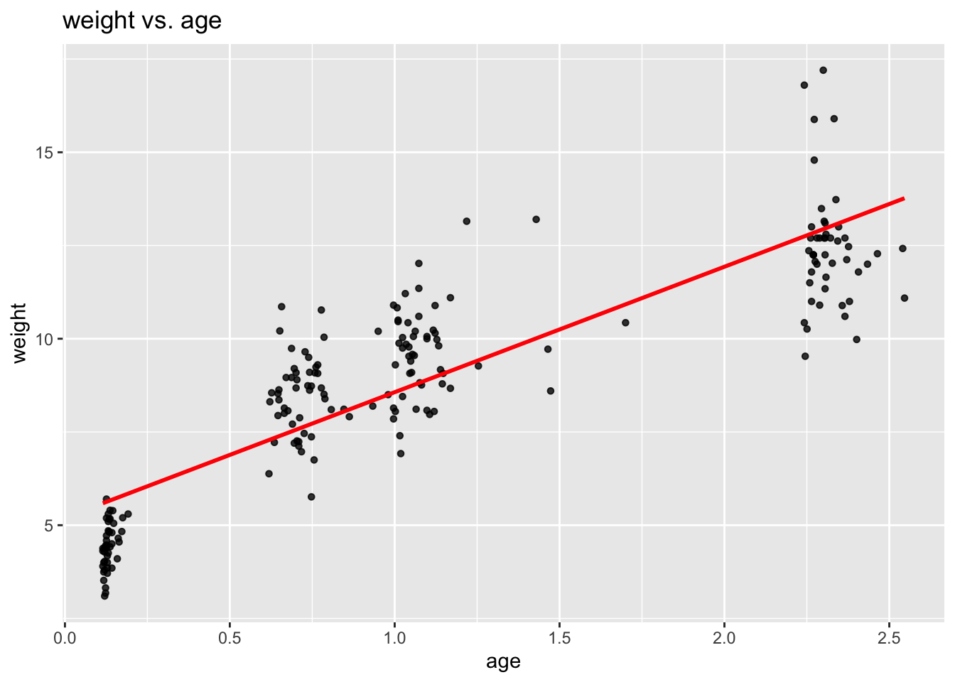 ggplot(data = childweight, aes(x = age, y = weight)) +