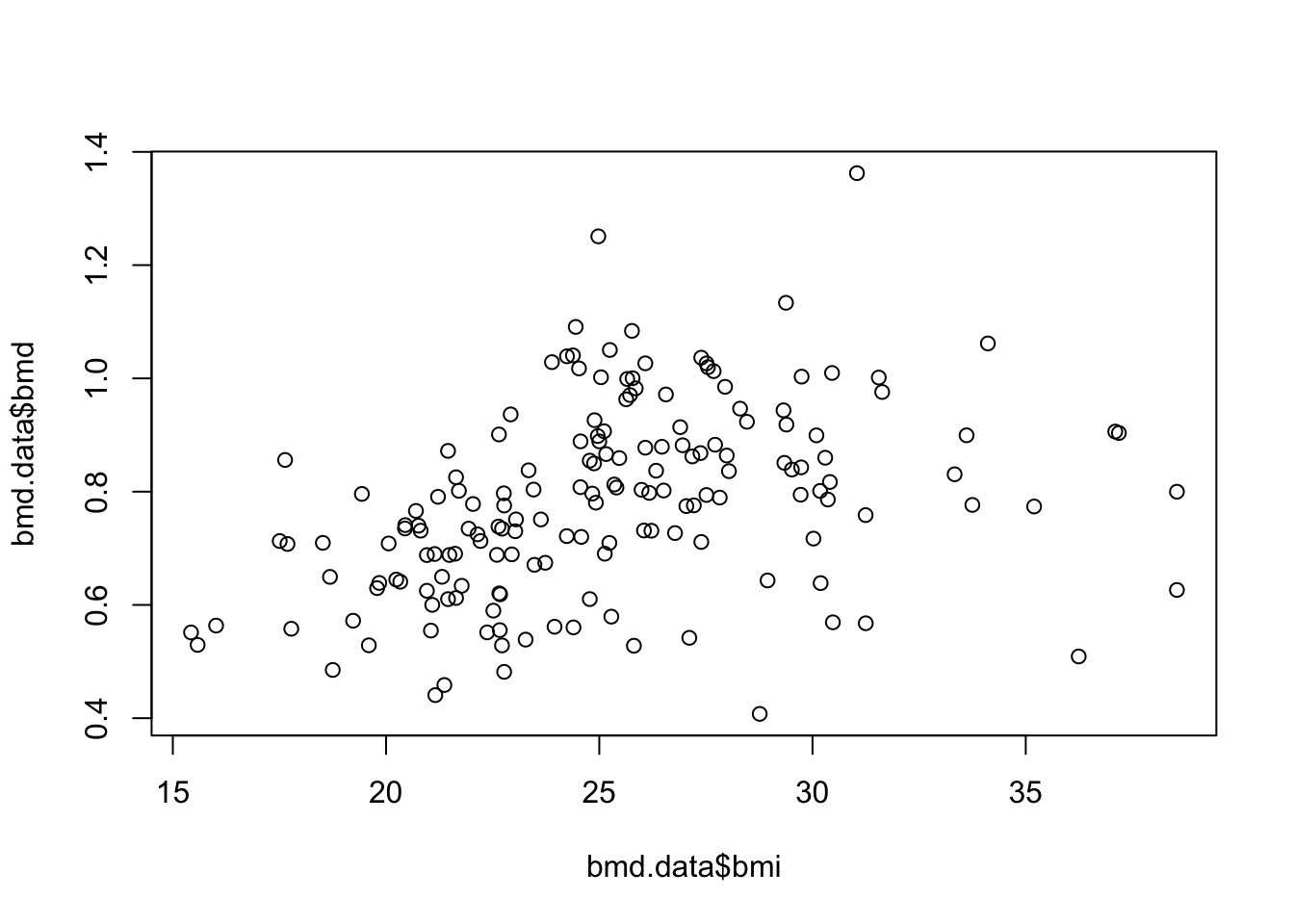 To see the relation between bone mineral density (BMD) and age we can produce a scatter plot: