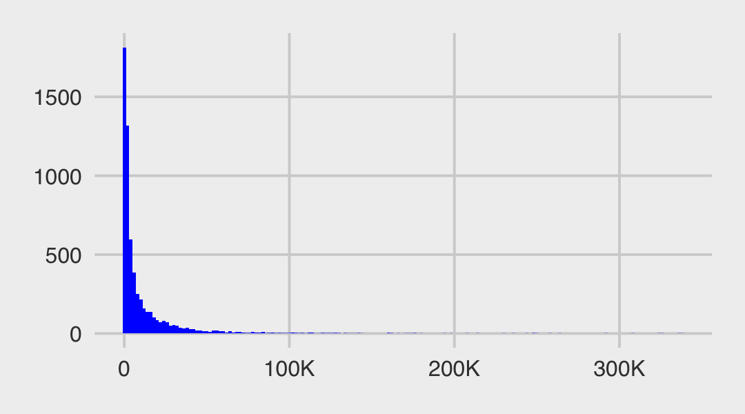 where \(n_i\) is indexed by the density column. Its values are distributed like so.