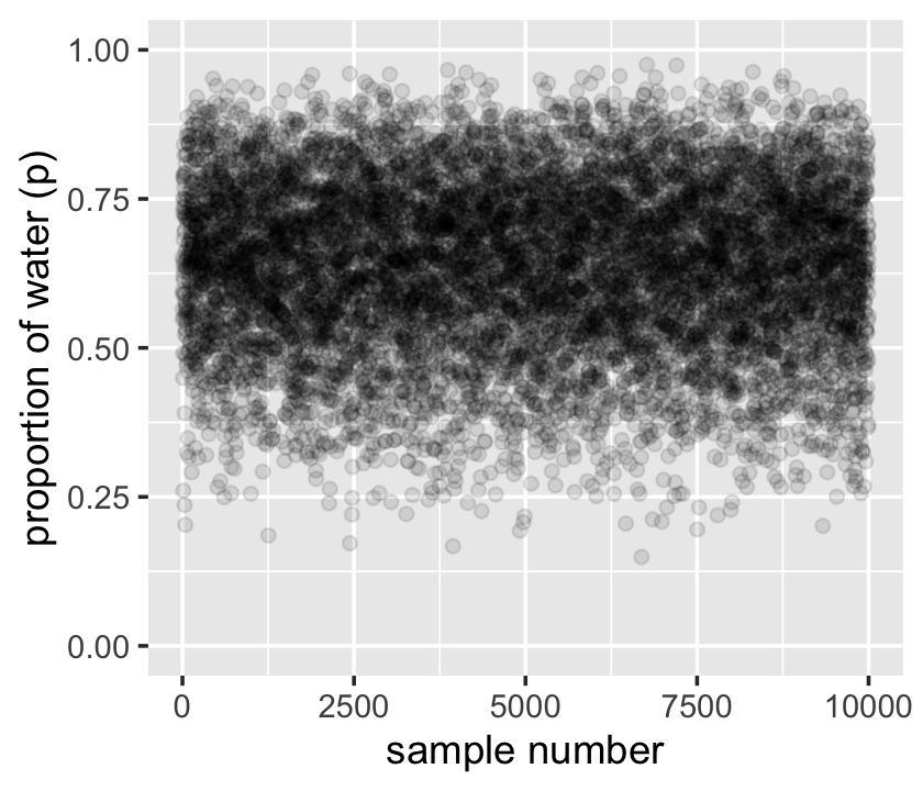 scale_y_continuous("proportion of water (p)", limits = c(0, 1)) +