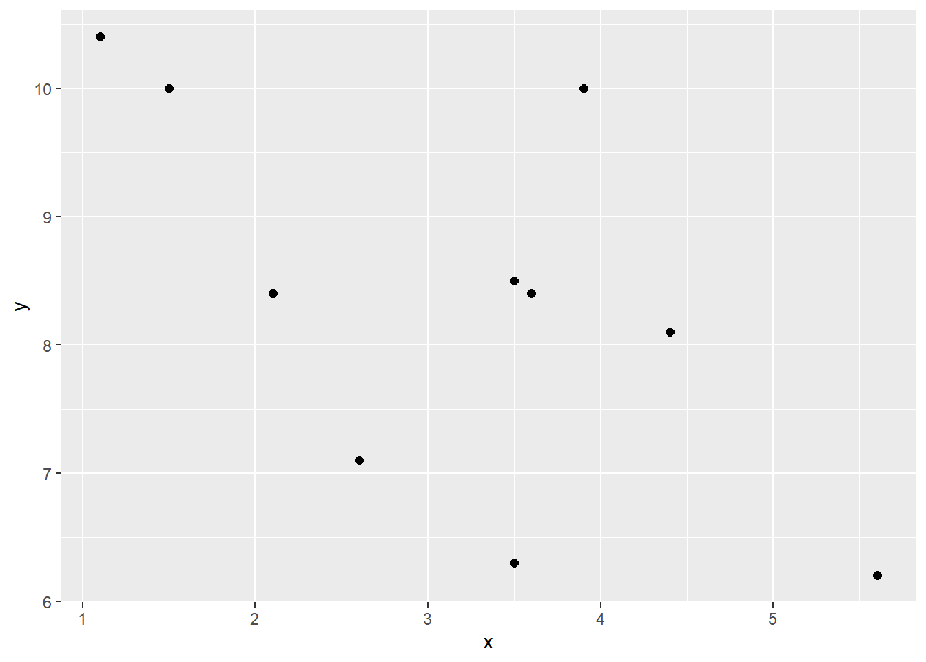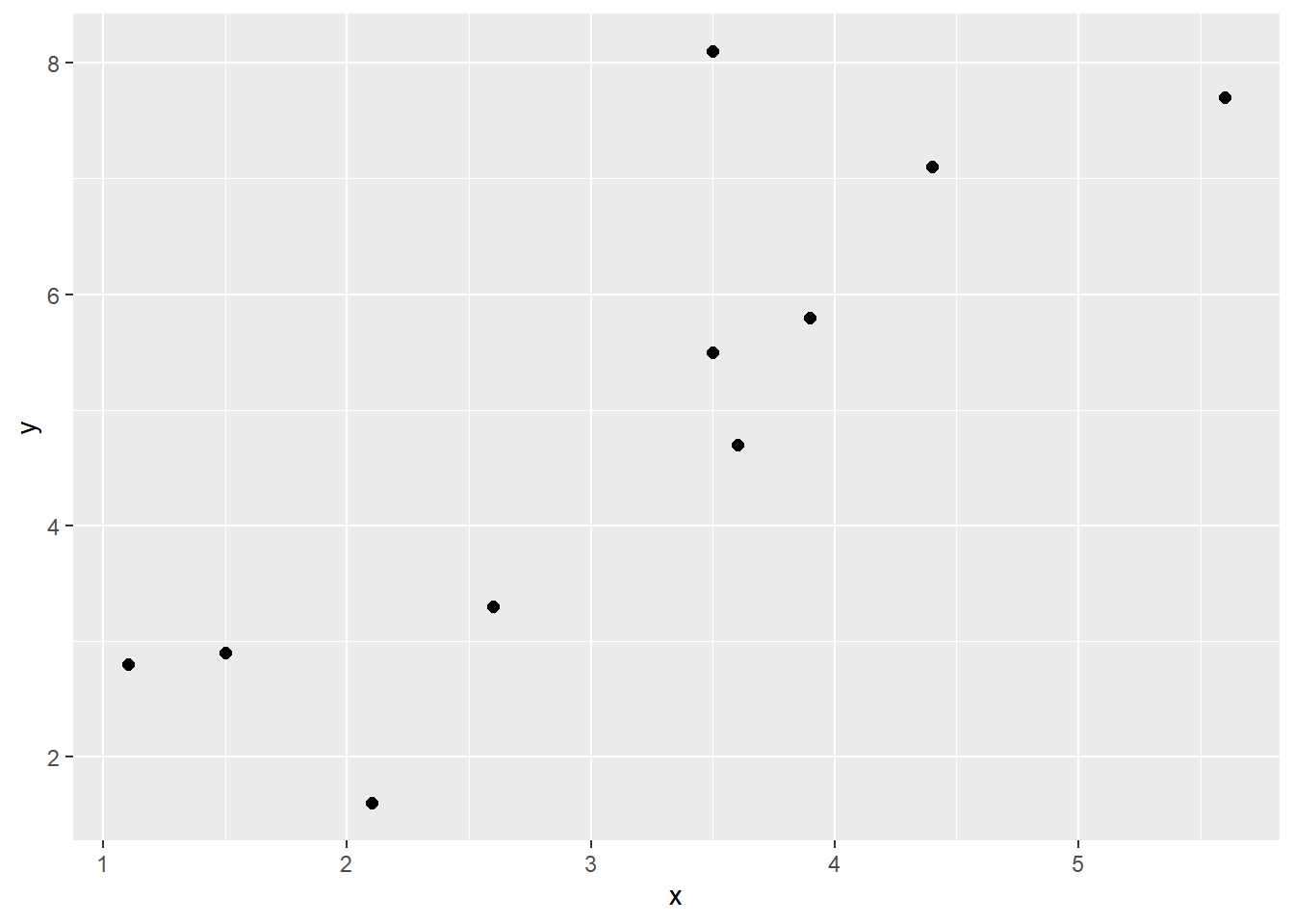 x <- c(1.1, 1.5, 2.1, 3.5, 3.6, 3.5, 2.6, 5.6, 4.4, 3.9)