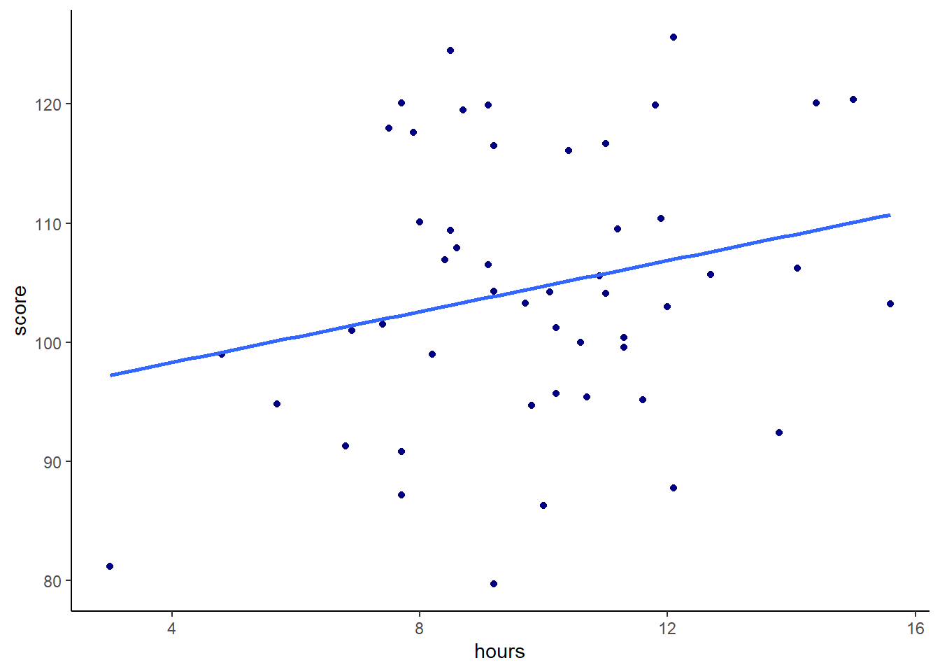 cor(exams$revise, exams$exam, method = "spearman") ## [1] 0.3330192
