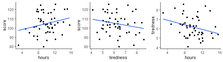 Again, we see that the relationship between these two variables is reduced considerably to \(\rho=0.13\) when we control for each of their relationships with anxiety.