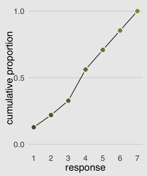 “This chapter introduced several new types of regression, all of which are generalizations of generalized linear models (GLMs)” (p. 397). This chapter has been a ride. If you’d like more practice with the negative-binomial model and some of the others models for categorical data we covered in this chapter and in Chapter 11, Alan Agresti covered them extensively in his (2015) text, Foundations of linear and generalized linear models. For more on different kinds of zero-inflated count models, check out Atkins et al. (2013), A tutorial on count regression and zero-altered count models for longitudinal substance use data. If you’d like to learn more about using cumulative probabilities to model ordinal data in brms, check out Bürkner and Vuorre’s (2019) Ordinal regression models in psychology: A tutorial and its repository on the Open Science Framework (https://osf.io/cu8jv/). Also check out Chapter 23 of my (2023a) ebook Doing Bayesian Data Analysis in brms and the tidyverse were we model ordinal data with a series of cumulative probit models.
