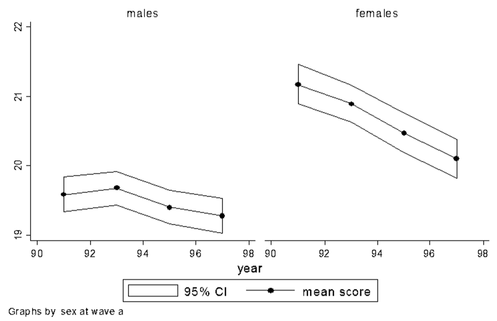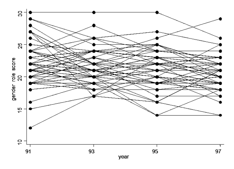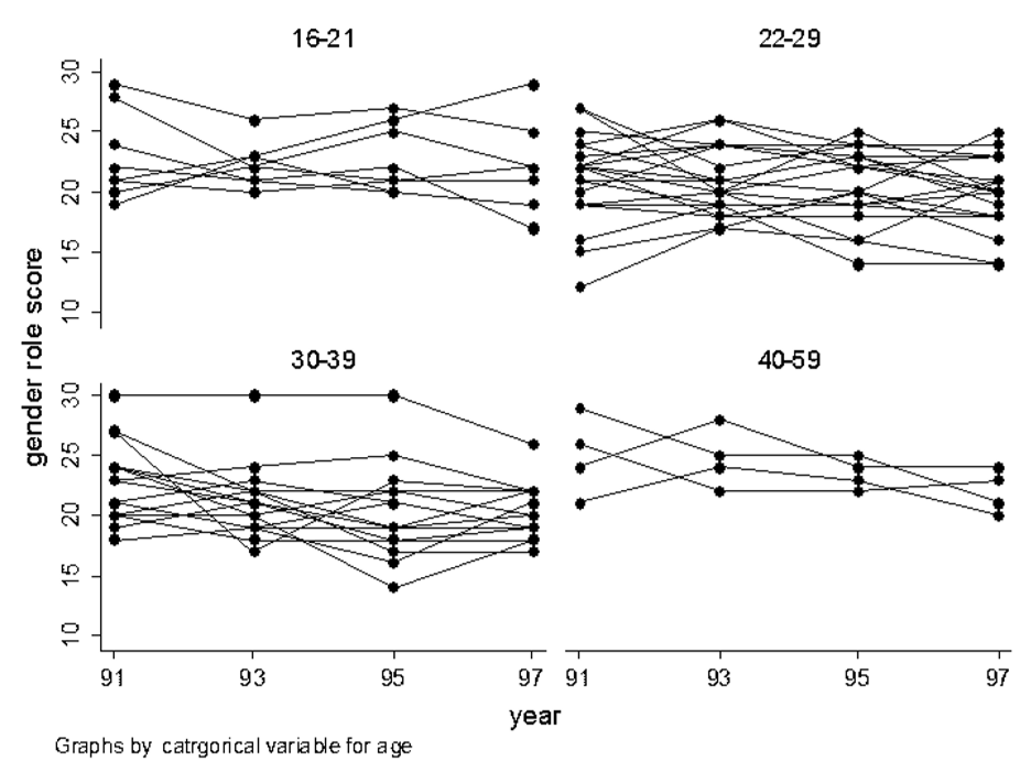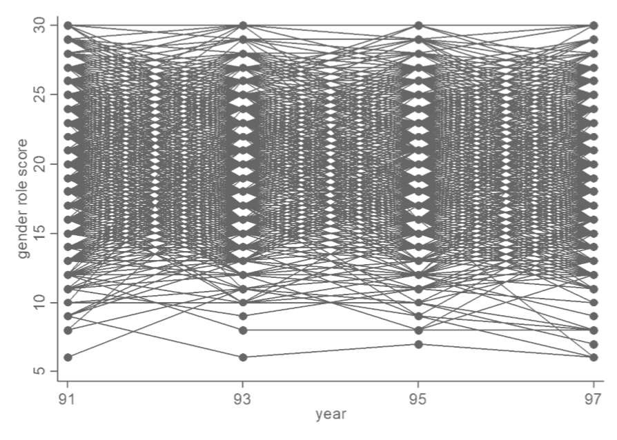 - Pessoas sem filhos na onda 1 que responderam todas as ondas de 1 a 7 com respostas válidas para atitude sobre o papel nas tarefas domésticas nos anos 1991, 1993, 1995 e 1997