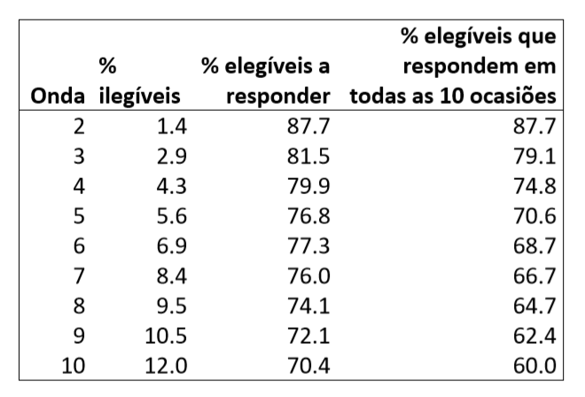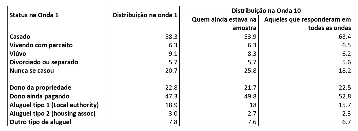 6.1 BHPS: Taxa de resposta nas ondas de 1 a 10