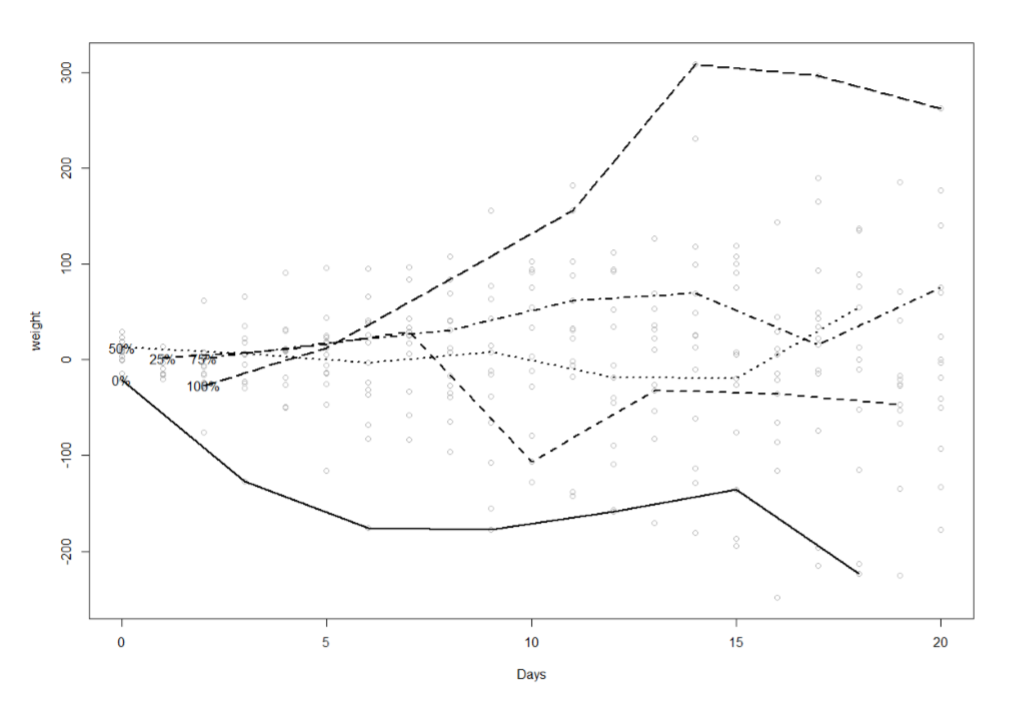 Exemplo do livro: Modeling Longitudinal Data por Robert Weiss