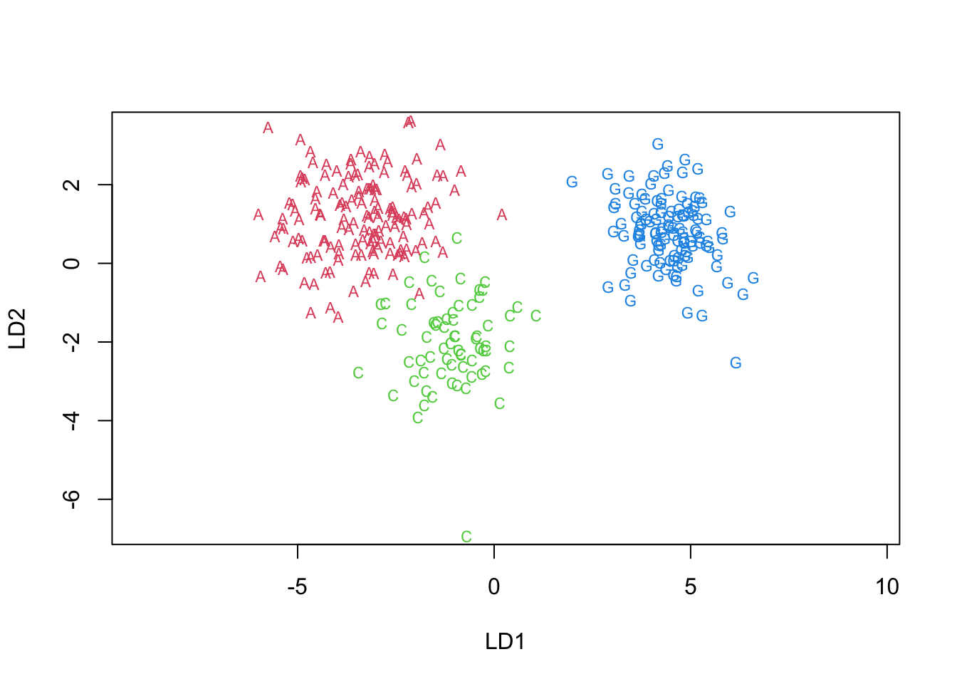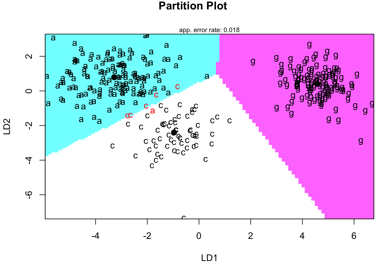 - Notice that three observations that are misclassified using LDA. - You can see them in the prior plot.- Note: we could use a ‘leave one out’ approach to classification as well.