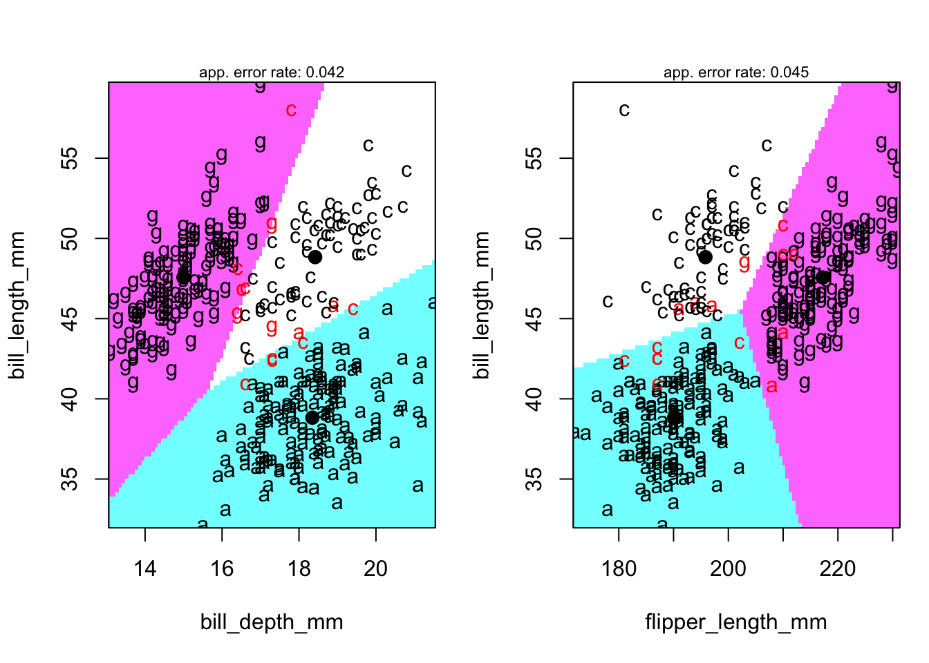 points(penguins[,c(3,4)],pch=1,col=as.numeric(newLabel),cex=1.1)