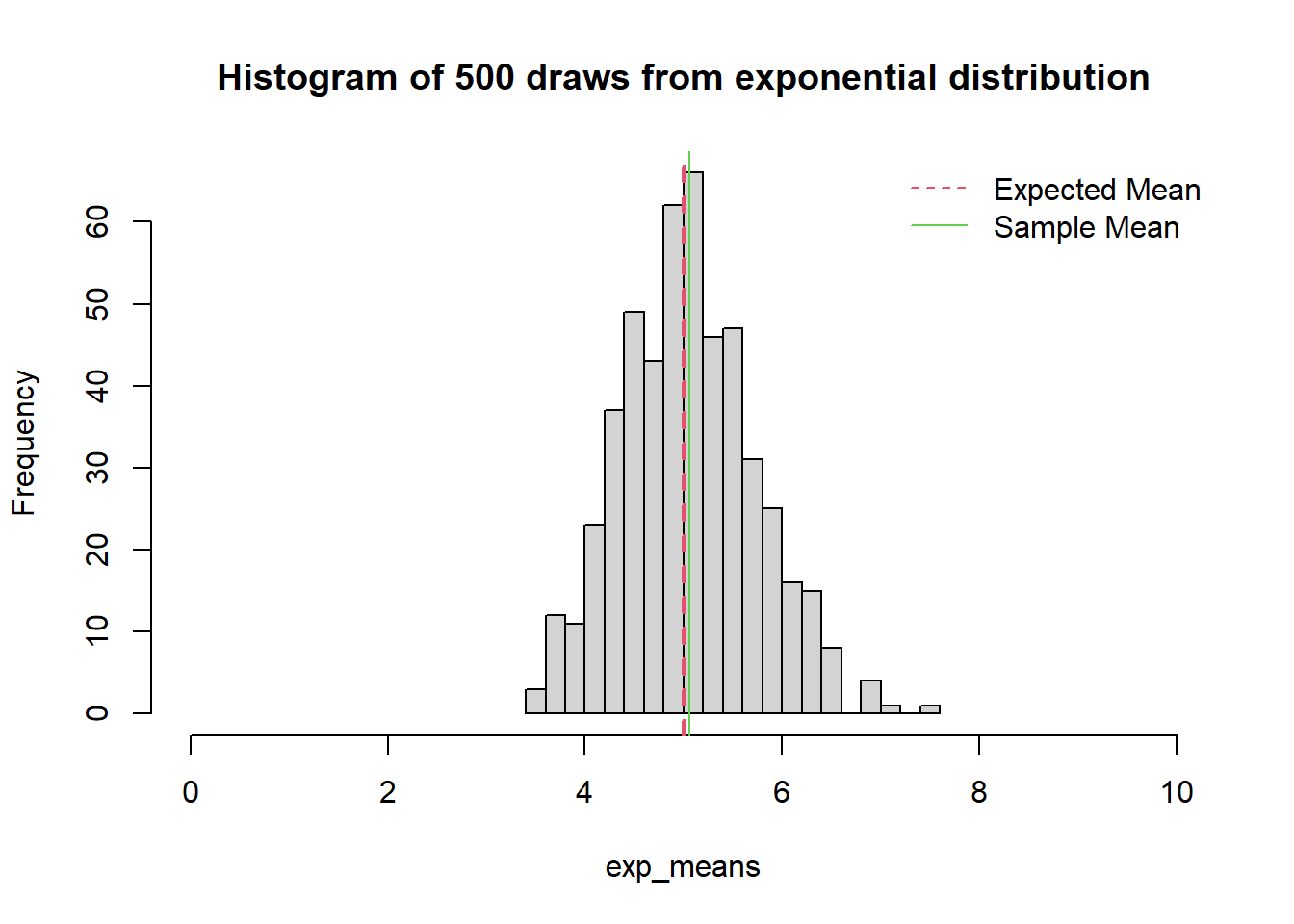 legend('topright', c("Expected Mean", "Sample Mean"),