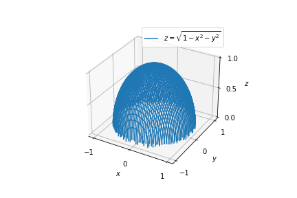 f(x,y) &= \sqrt{1 - x^2 - y^2}.