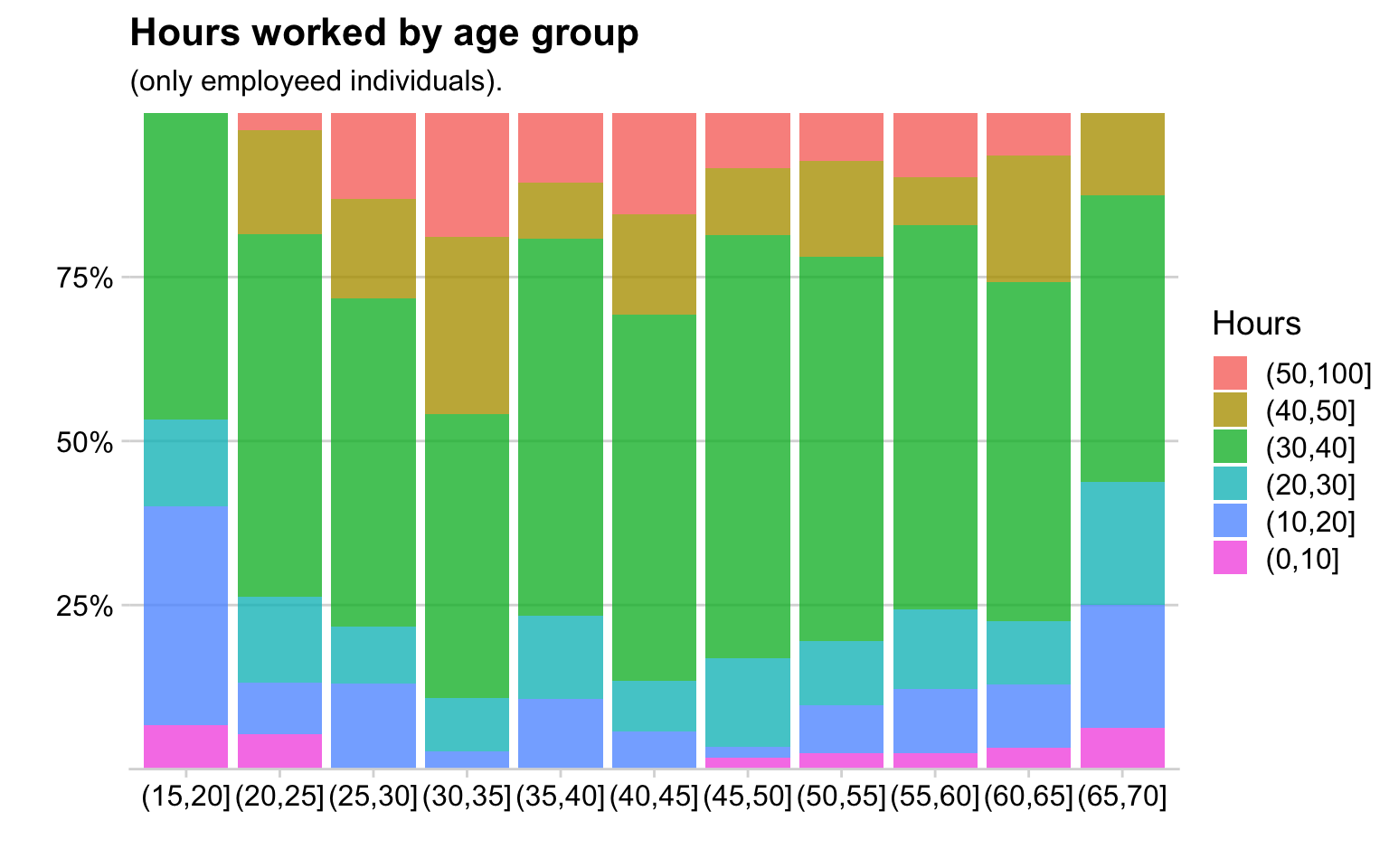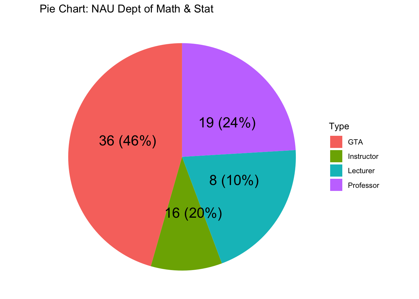 As typical, with a just a few categories, we should move the labels onto the graph and just annotate the graph. Also, we’ll order the categories from the most temporary employees (Graduate Teaching Assistants) to most permanent (Professors).