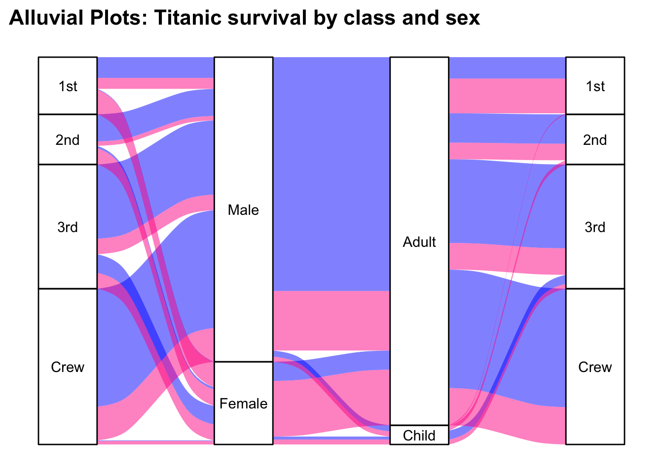 If we want to compare multiple categorical variables, another option is alluvial plots.