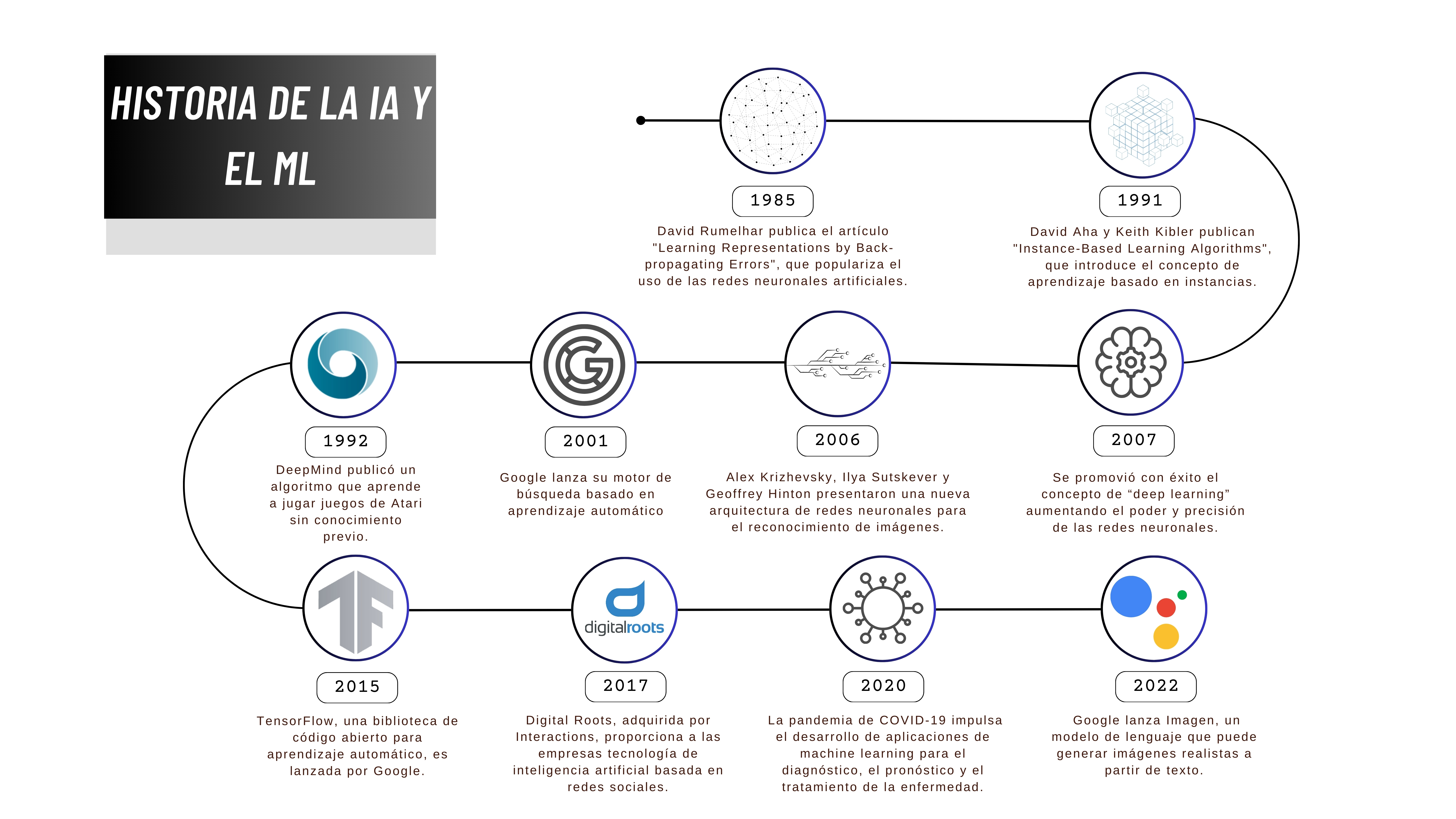 | Basado en reglas y lógica para la toma de decisiones. | Aprendizaje automático a partir de datos | Aprendizaje a través de la abstracción y reconocimiento de patrones en grandes conjuntos de datos. |