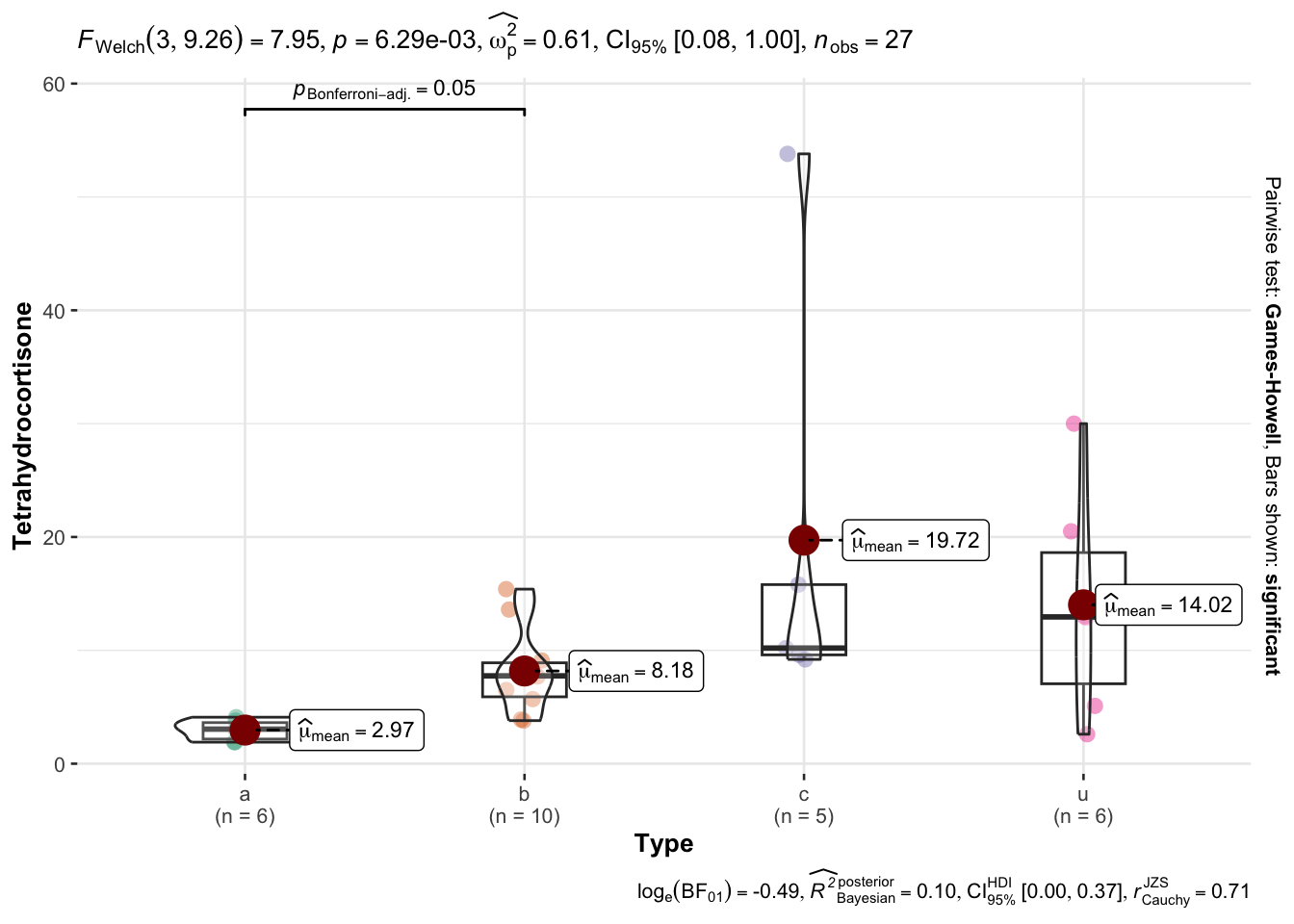 data: Cushings$Tetrahydrocortisone and Cushings$Type
