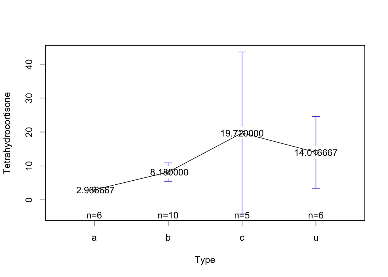 Ejercicio 13.9 Asuma que se cumplen todos los supuestos para realizar la prueba de Hommel y realice esta comparación post-hoc para Pregnanetriol por tipo (Type). Realice la prueba por los tres métodos descritos en el compendio.