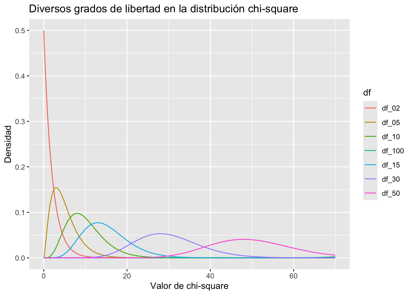 dchisq es la función densidad, permite graficar una distribución