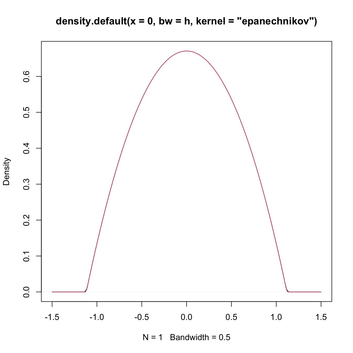 lines(density(0, kernel = "epanechnikov", bw = h))