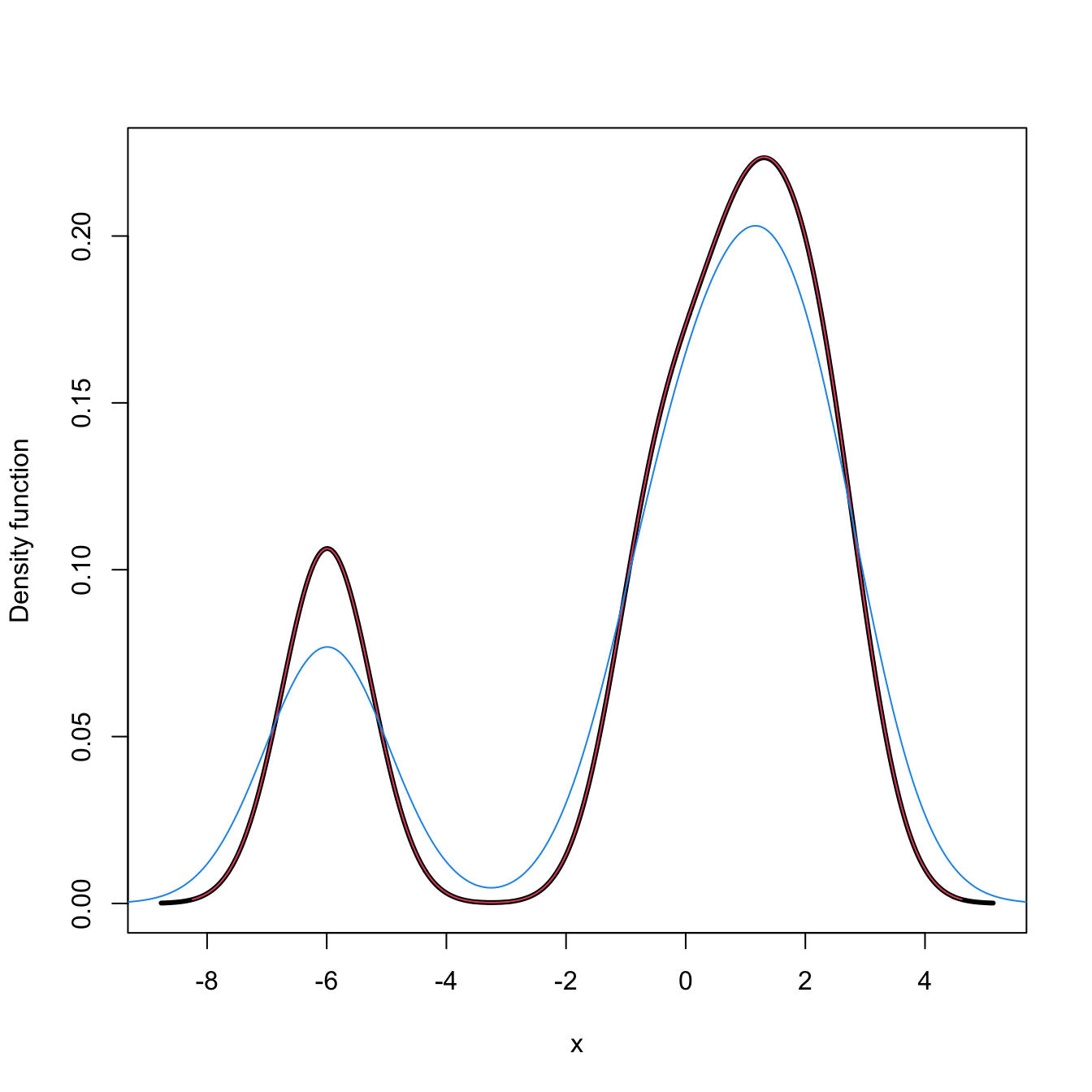 plot(kde <- ks::kde(x = samp_t, h = bw), lwd = 3) # ?ks::plot.kde for options