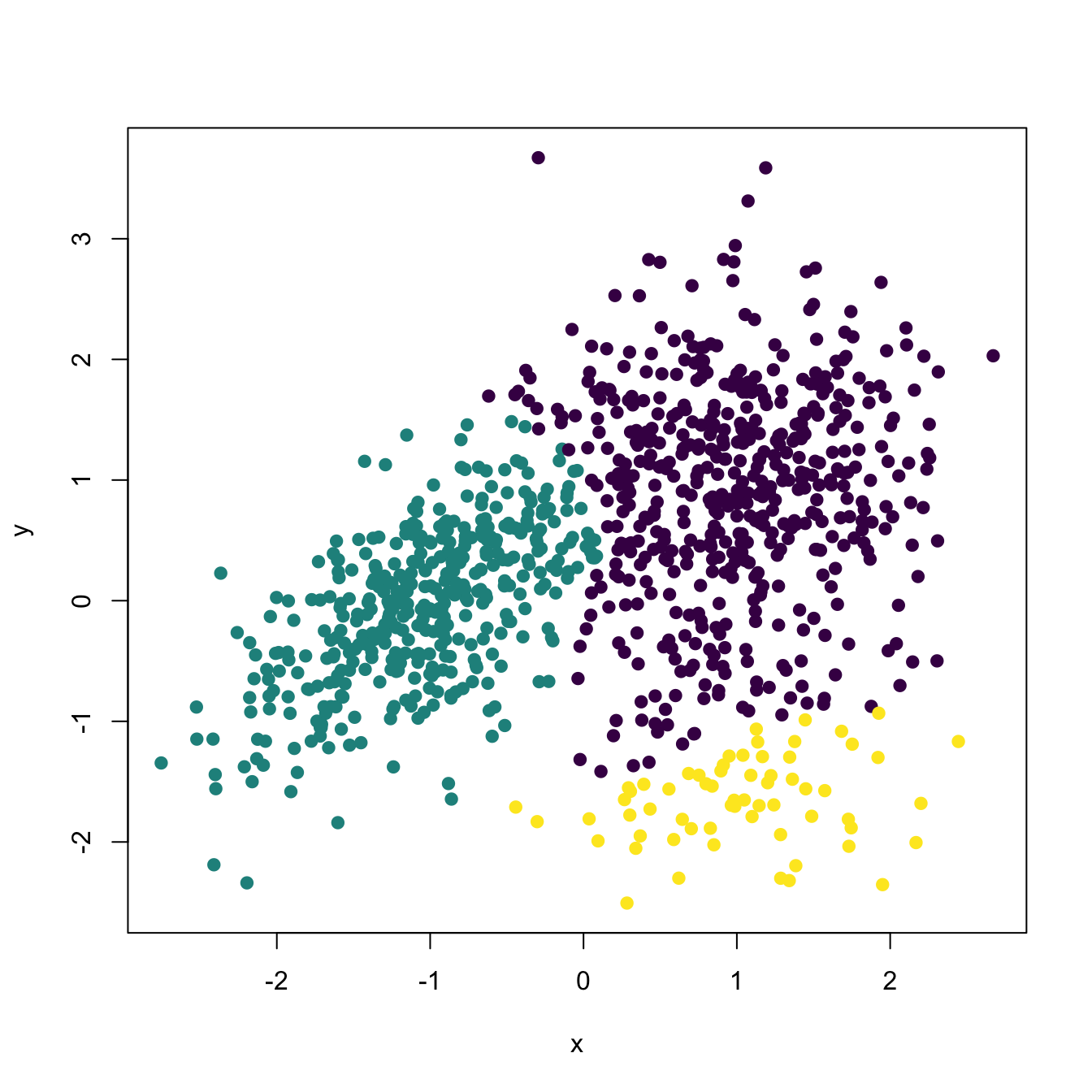 Which can be seen as a special case of fitting a mixture of \(k\) normals with isotropic covariance matrices \(\boldsymbol{\Sigma}=c\mathbf{I}_p,\) \(c>0.\)↩︎