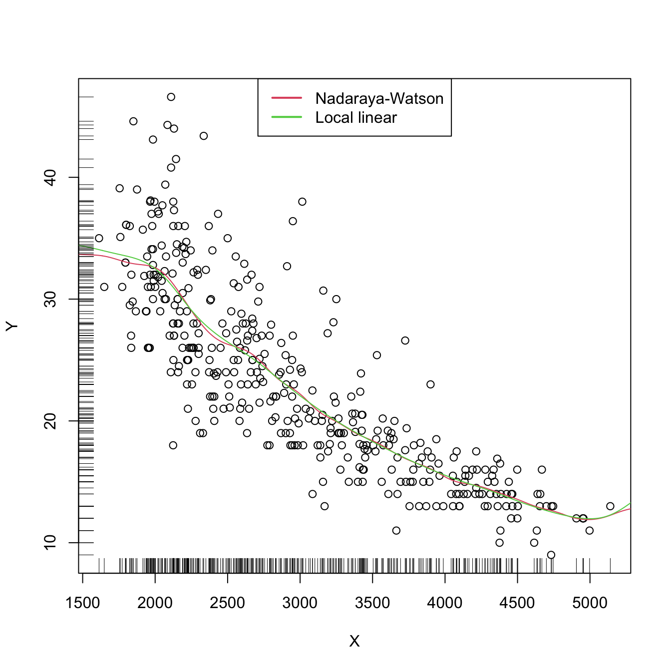 legend("top", legend = c("Nadaraya-Watson", "Local linear"),