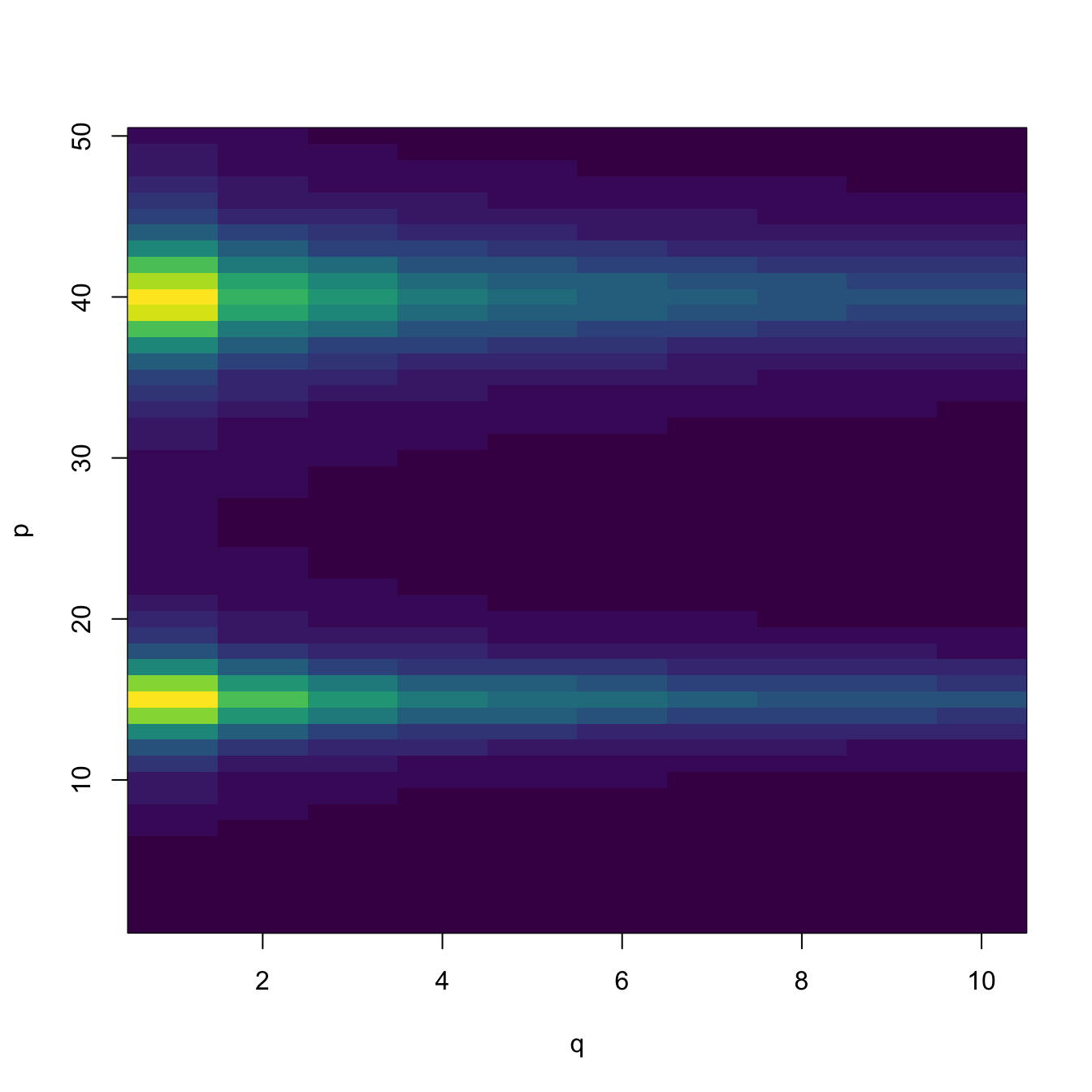 image(1:q, 1:p, t(B), col = viridisLite::viridis(20), xlab = "q", ylab = "p")