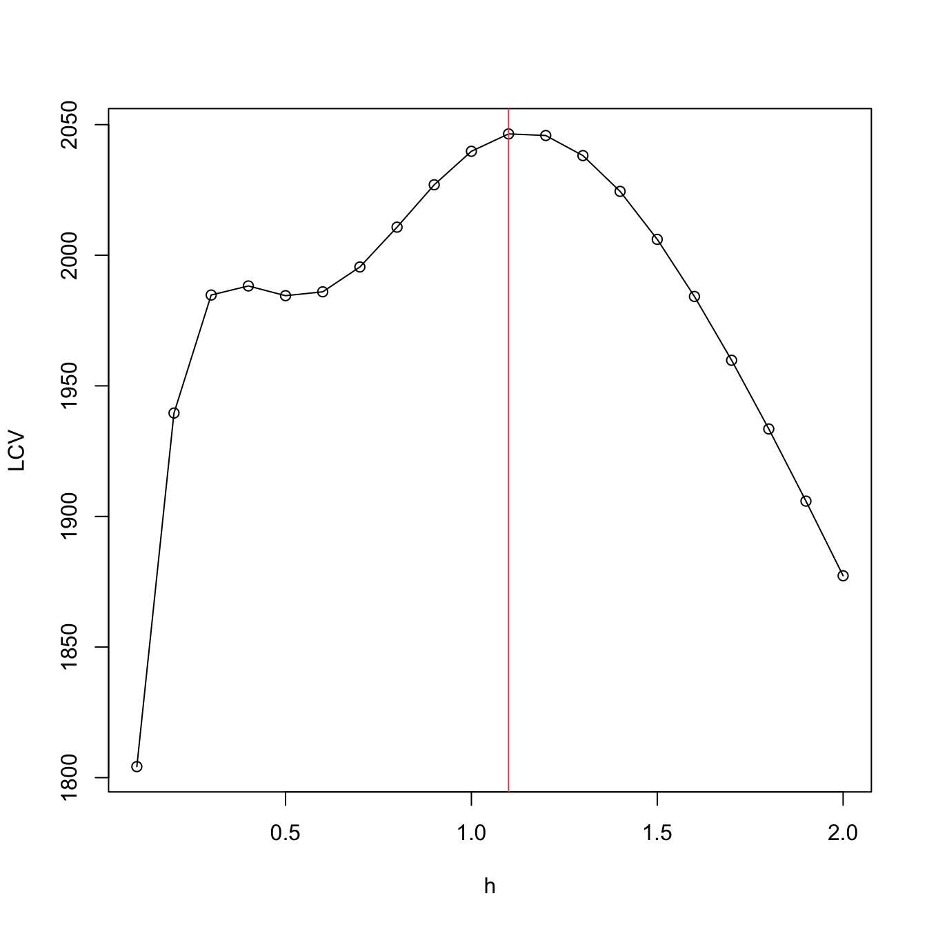 We conclude by illustrating how to compute the LCV function and optimize it (keep in mind that much more efficient implementations are possible!).