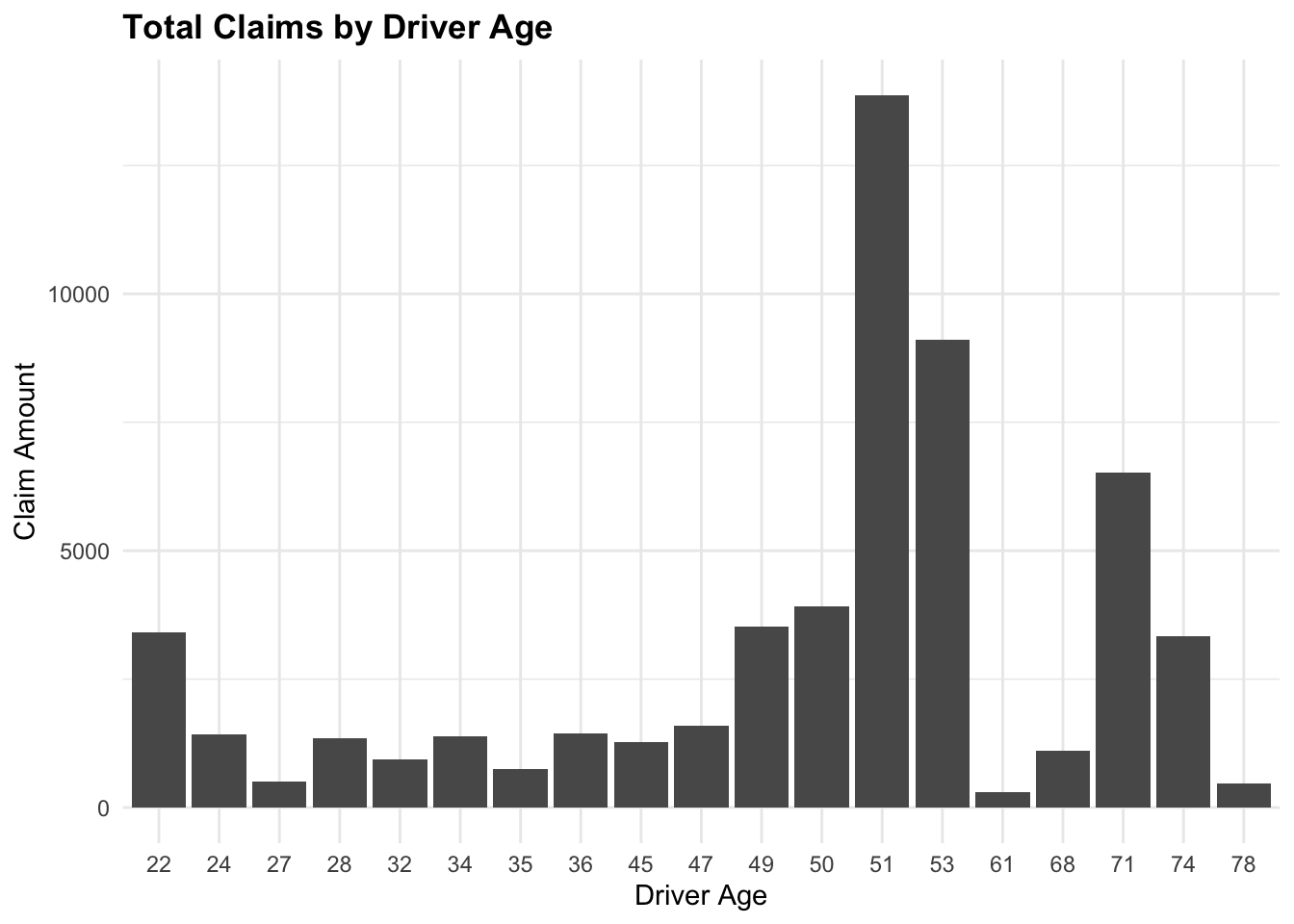 Grouping and Summarize total claims by DriverAge