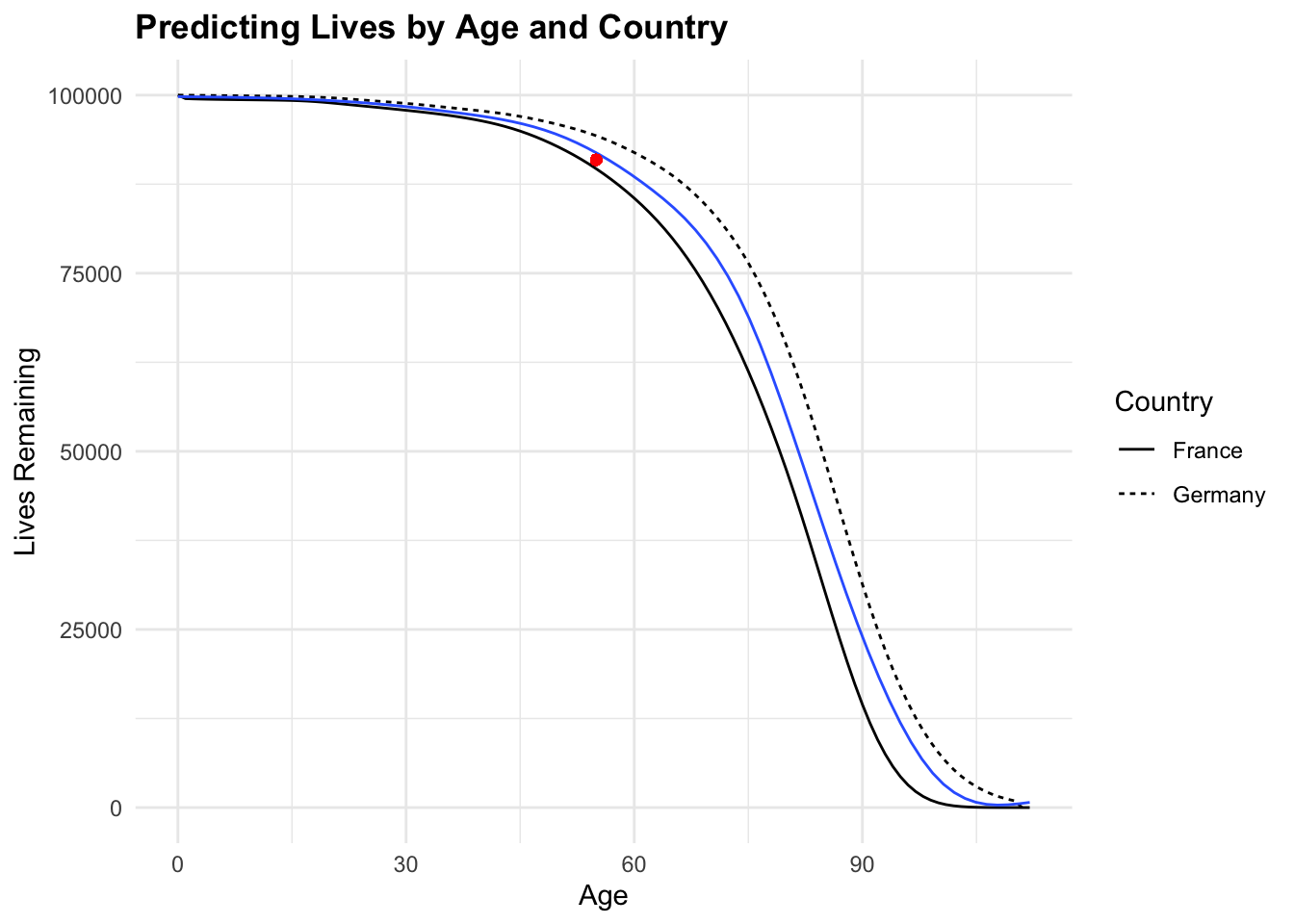 labs(title = "Predicting Lives by Age and Country",