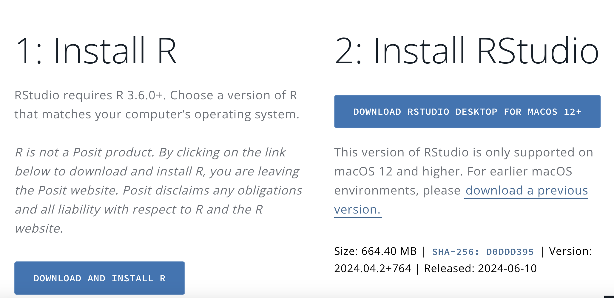 - Follow this link: https://posit.co/download/rstudio-desktop/