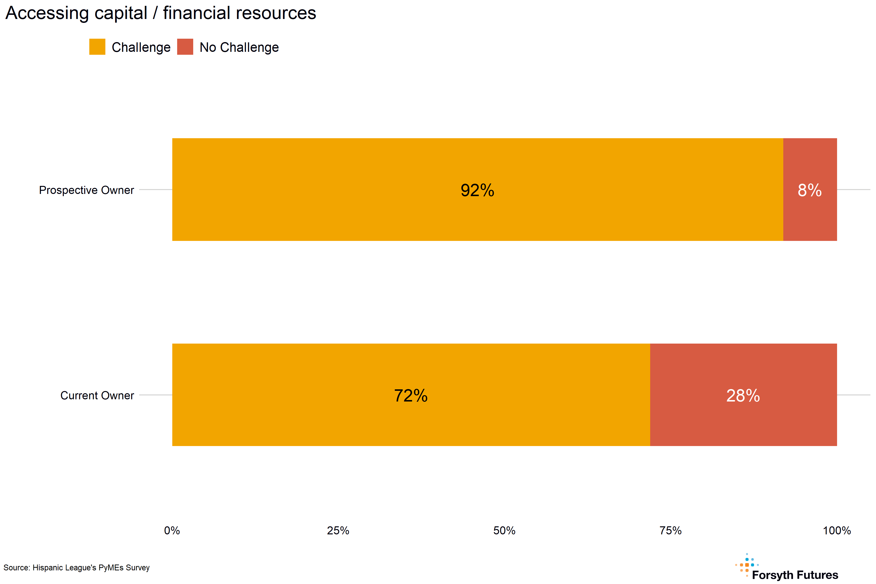 - More than three-quarters of current and prospective owners describe accessing capital / financial resources, inflation / increasing costs, and growing the business / product development as financial management challenges. 92% of prospective owners identify accessing capital / financial resources as a challenge compared to 72% of current owners.