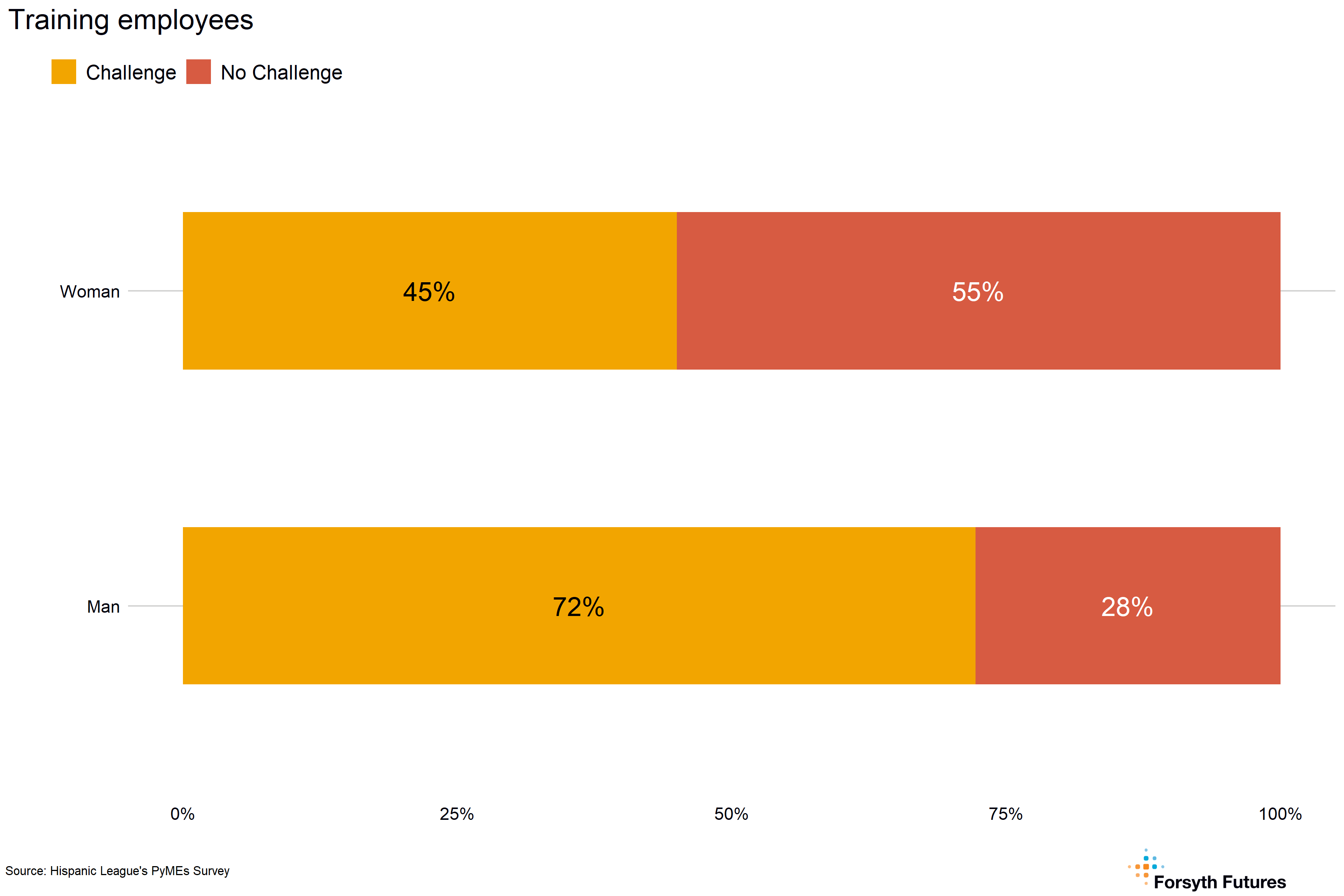 - More than half of current and prospective owners describe recruiting or retaining employees (63%) and training employees (57%) as personnel challenges. More men (72%) than women (45%) reported challenges with training employees.
