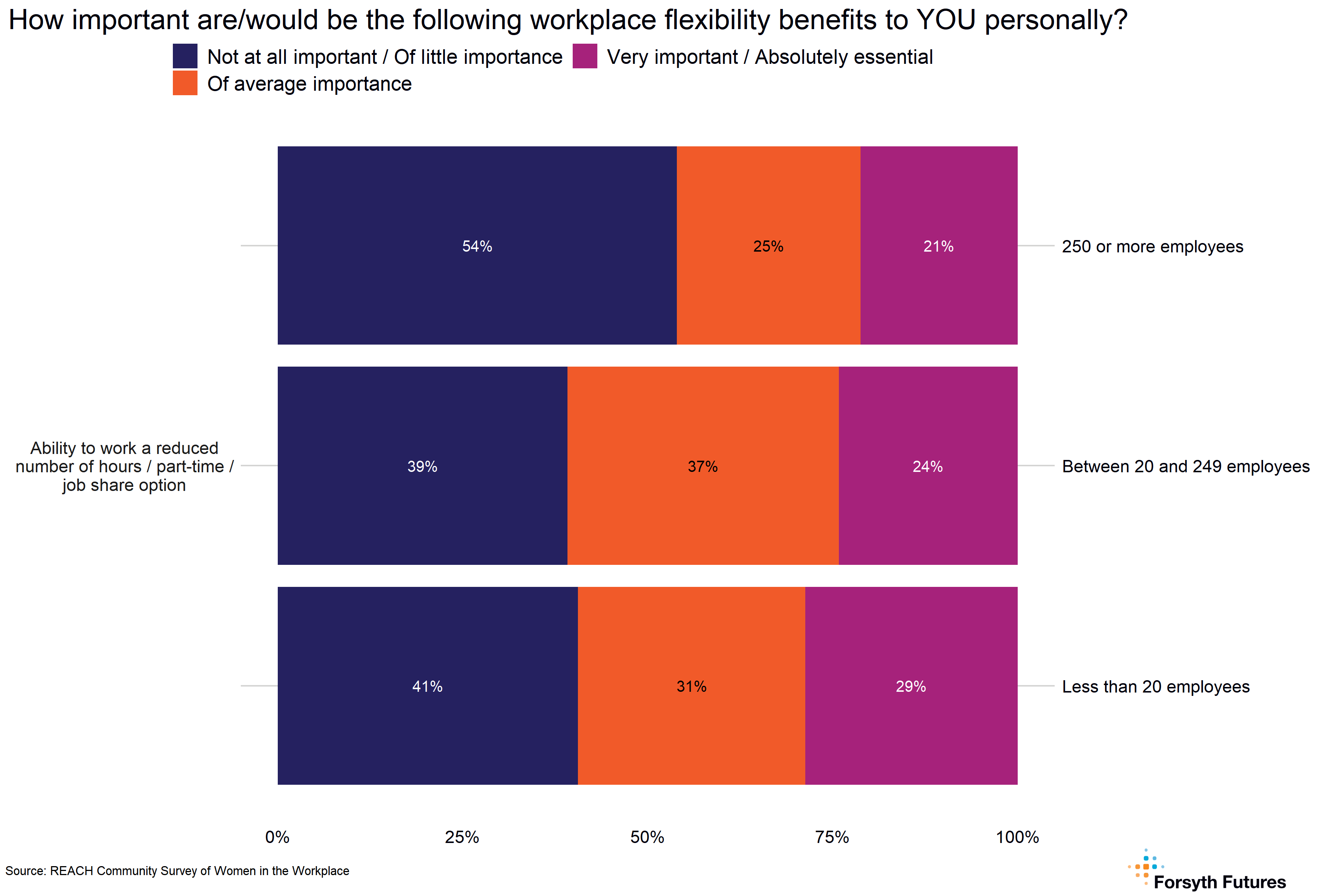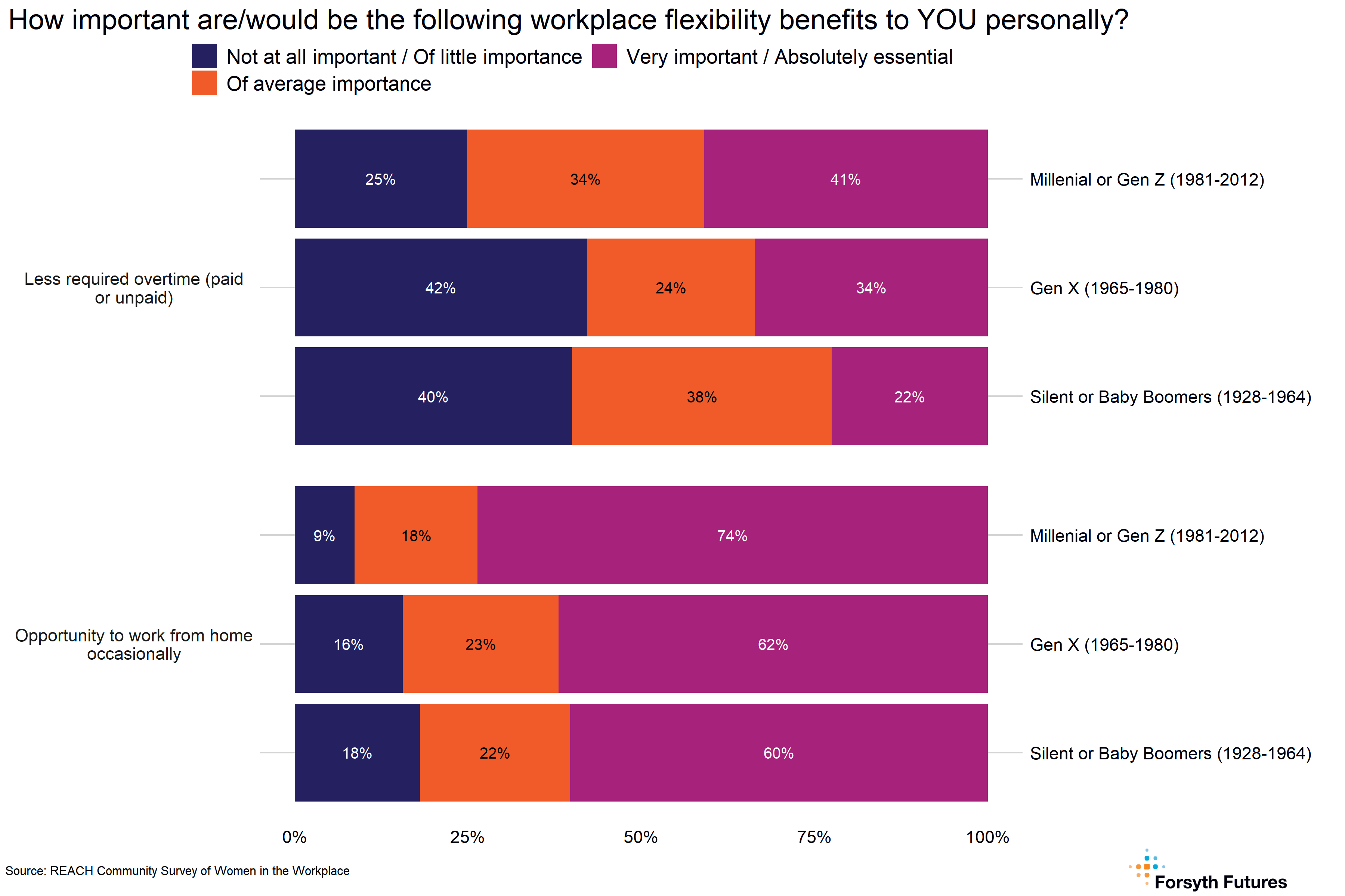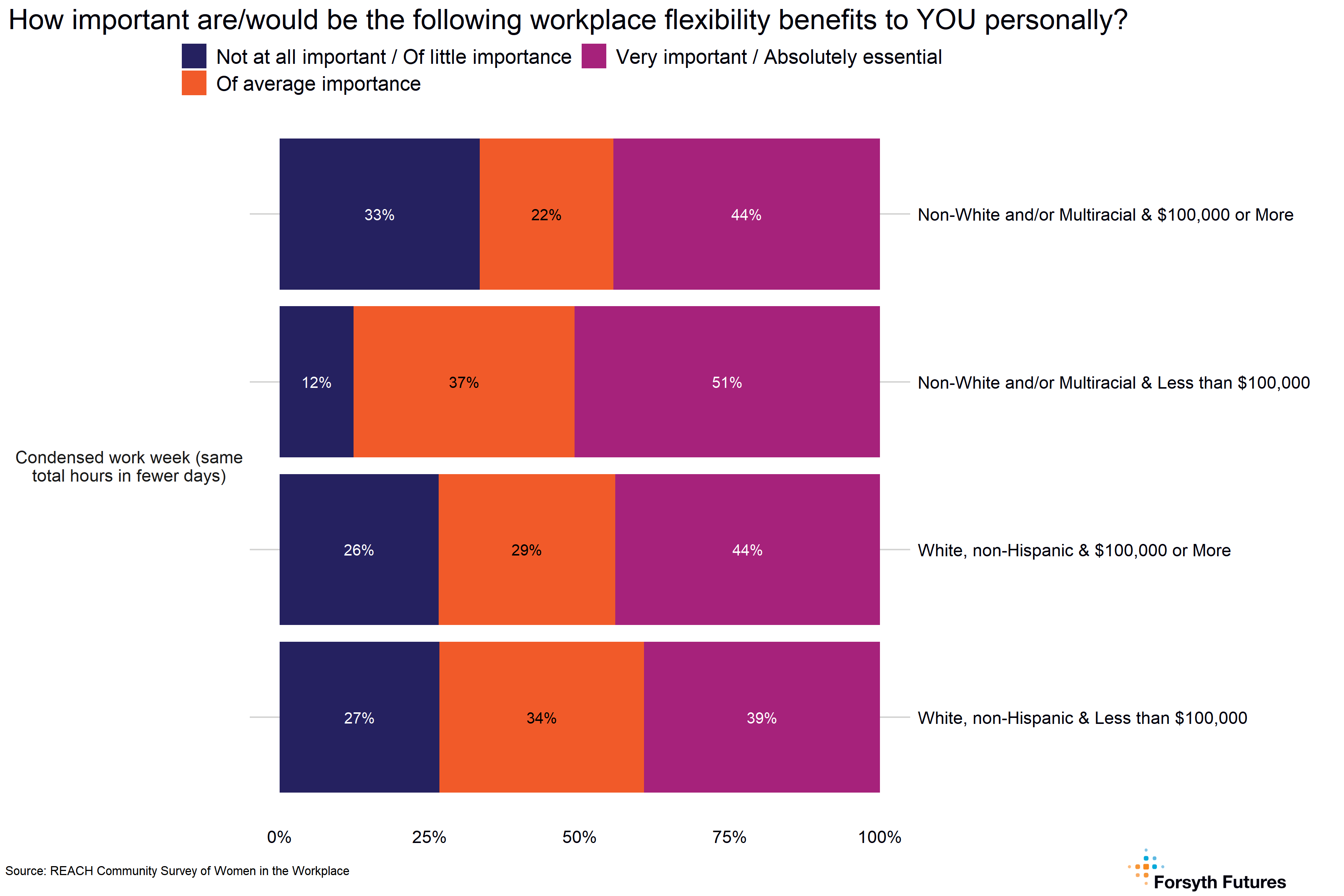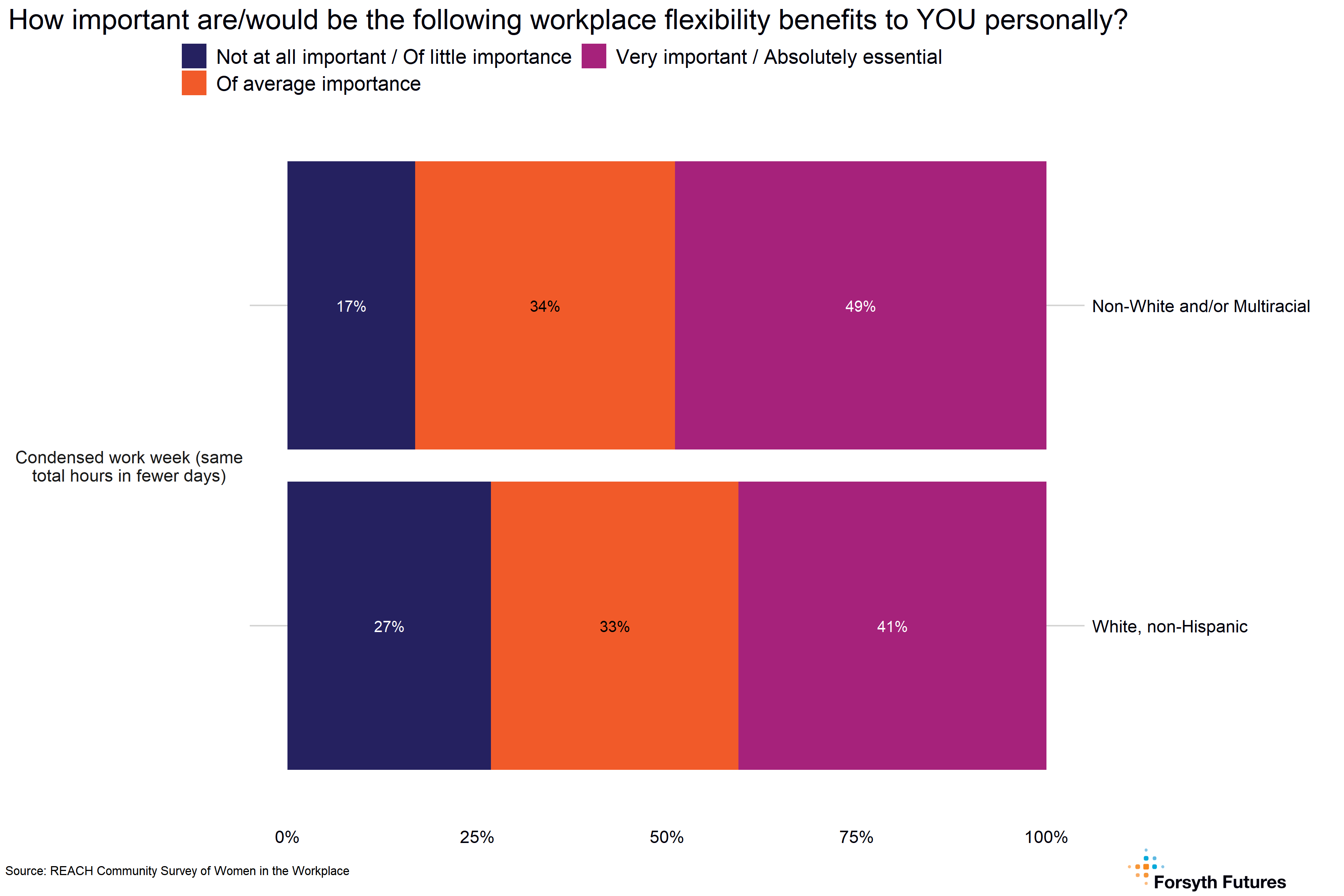 Among the disaggregations, analysts found the following statistically significant relationships between workplace flexibility benefits: