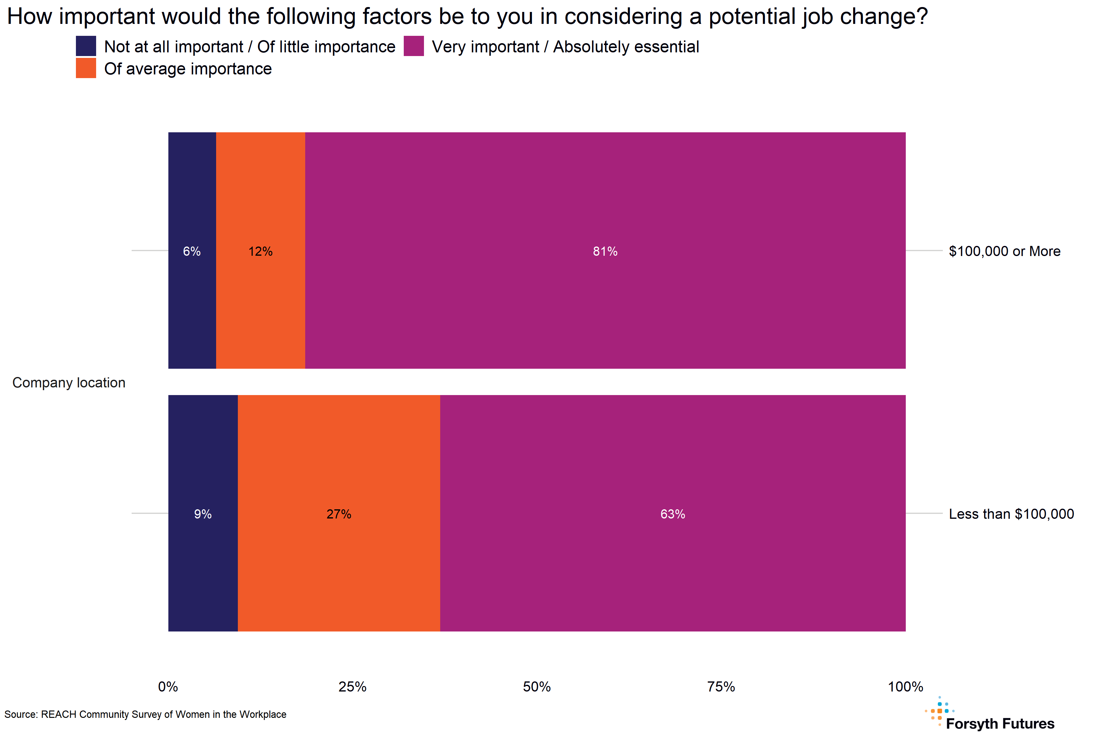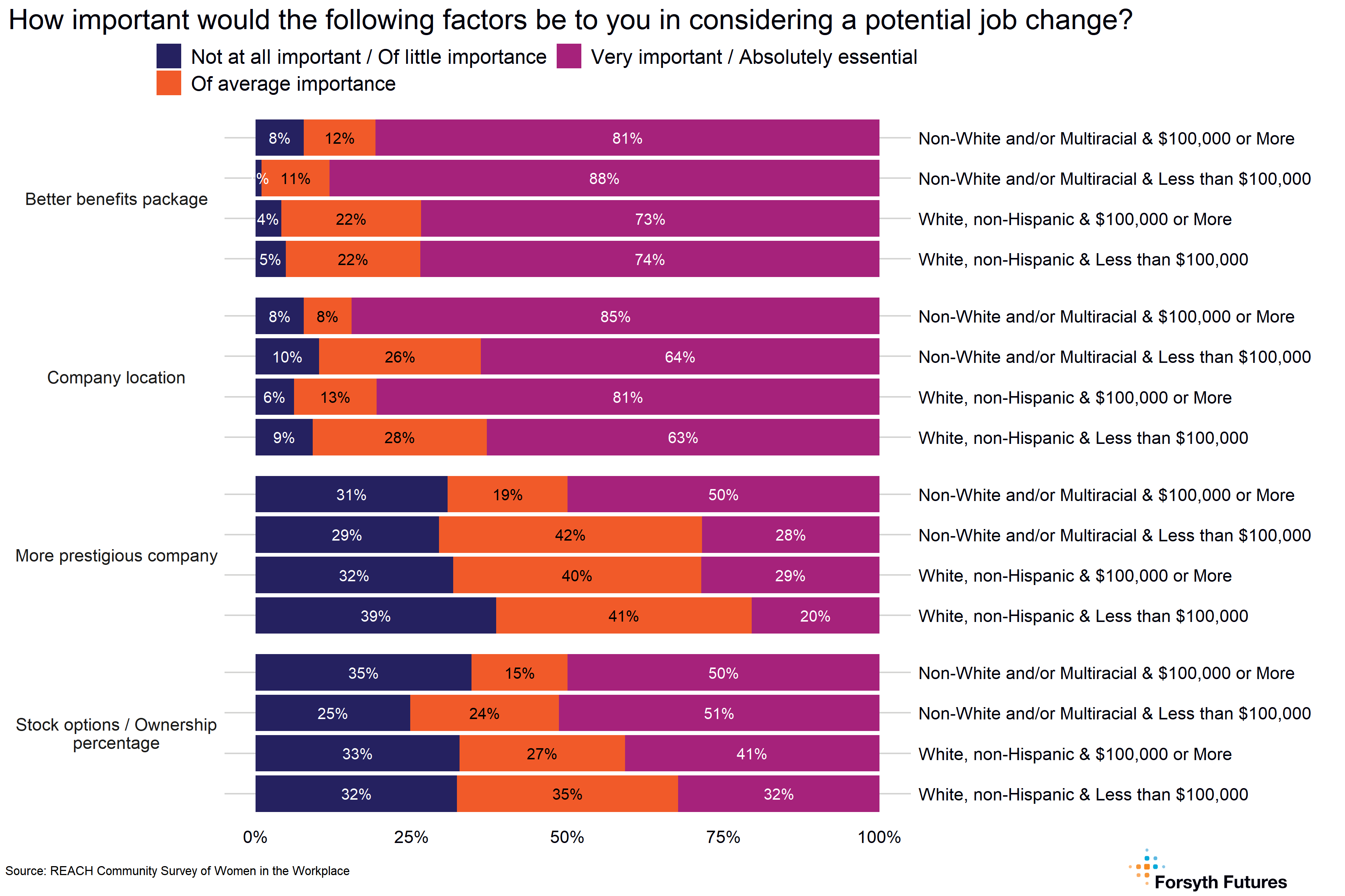 Among the disaggregations, analysts found the following statistically significant relationships between the factors that influence job change: