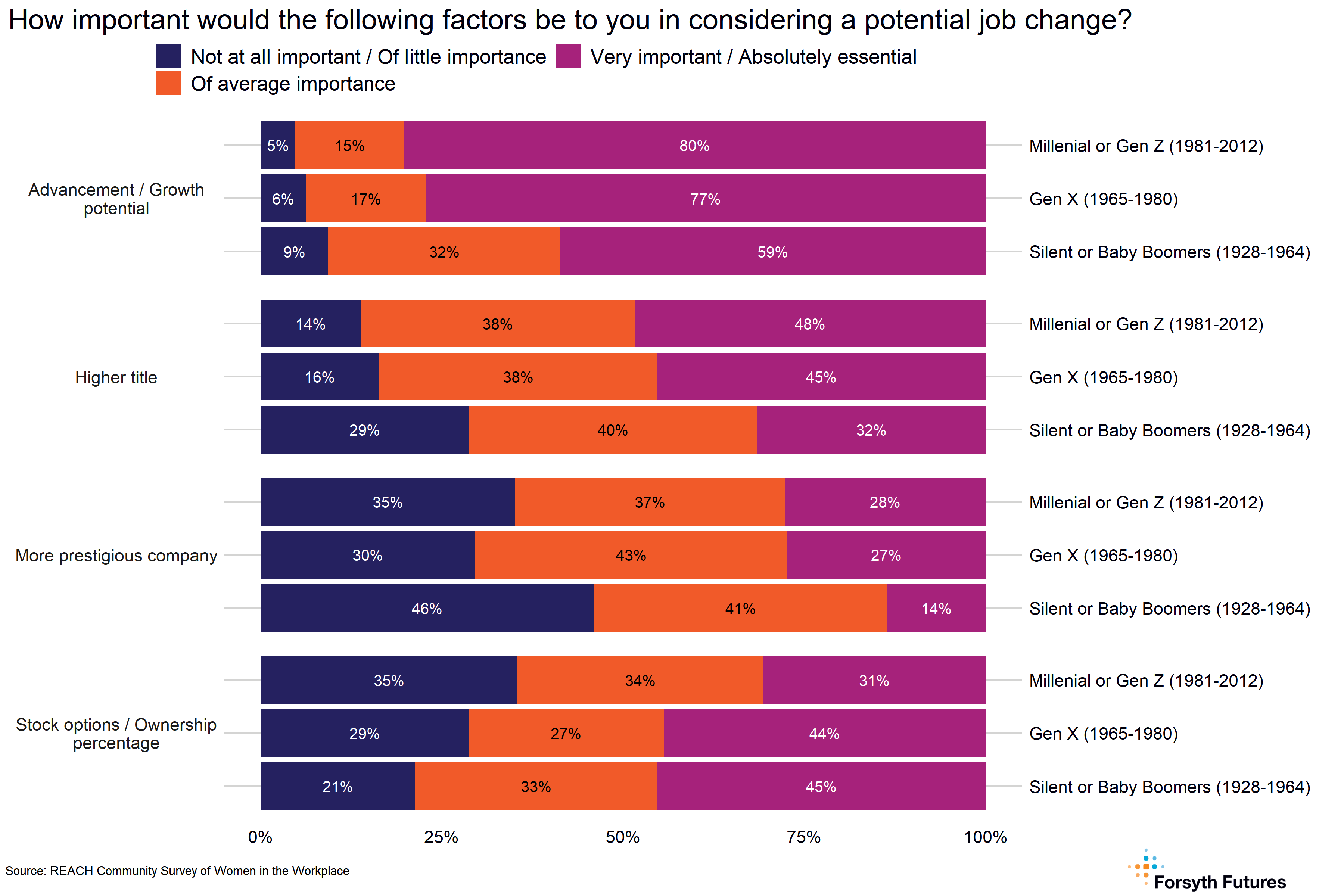 This section evaluates what factors most influence each respondent’s decision to change jobs and which factors have positively or negatively affected their career advancement.