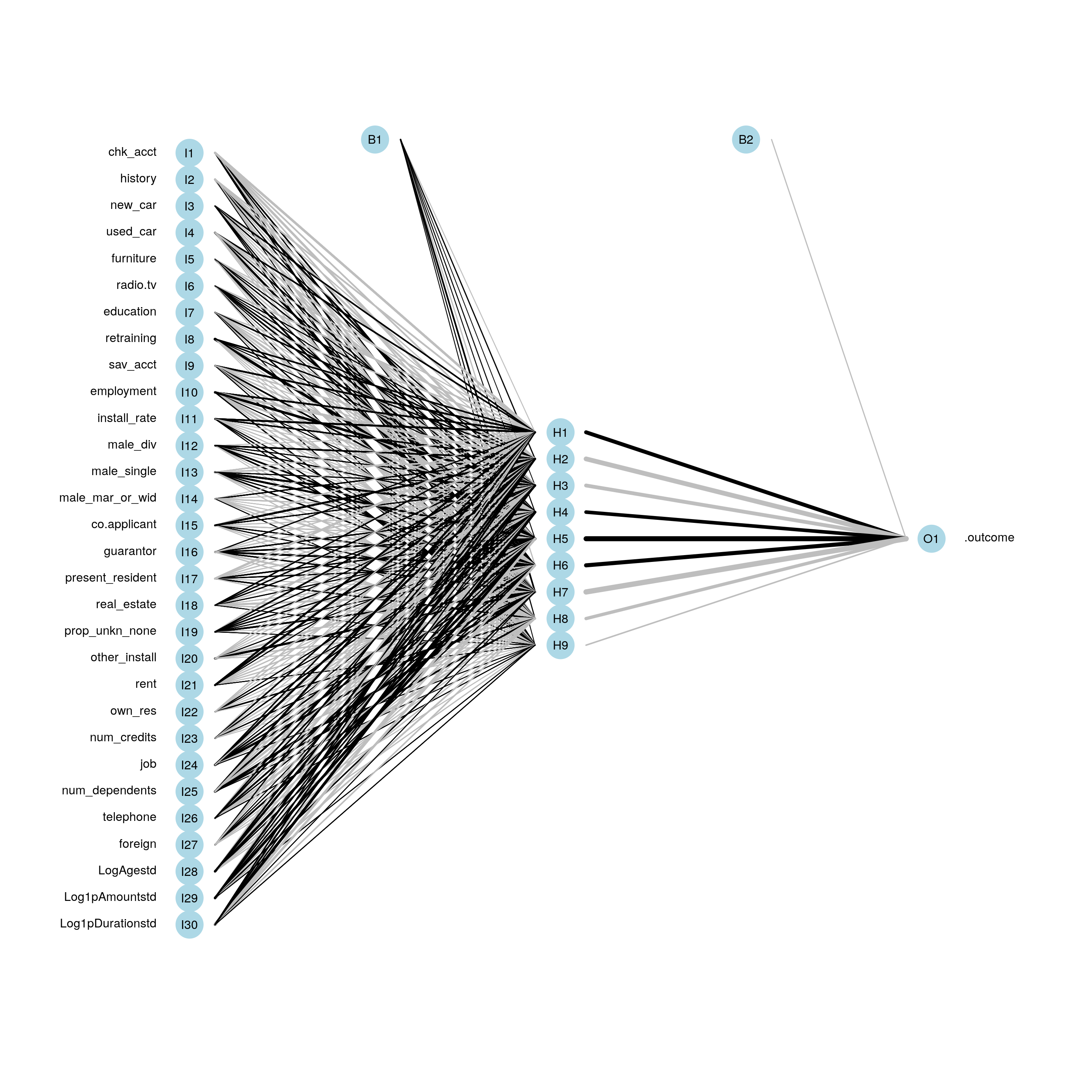 german <- german %>% select(-age, -amount, -obs, -duration, -LogAge, -Log1pAmount, -Log1pDuration)