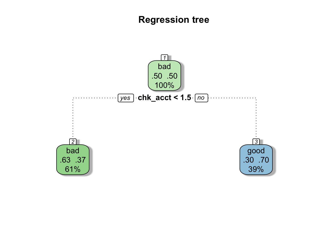 form = risk ~ chk_acct + history + used_car + education + sav_acct + employment + male_single +